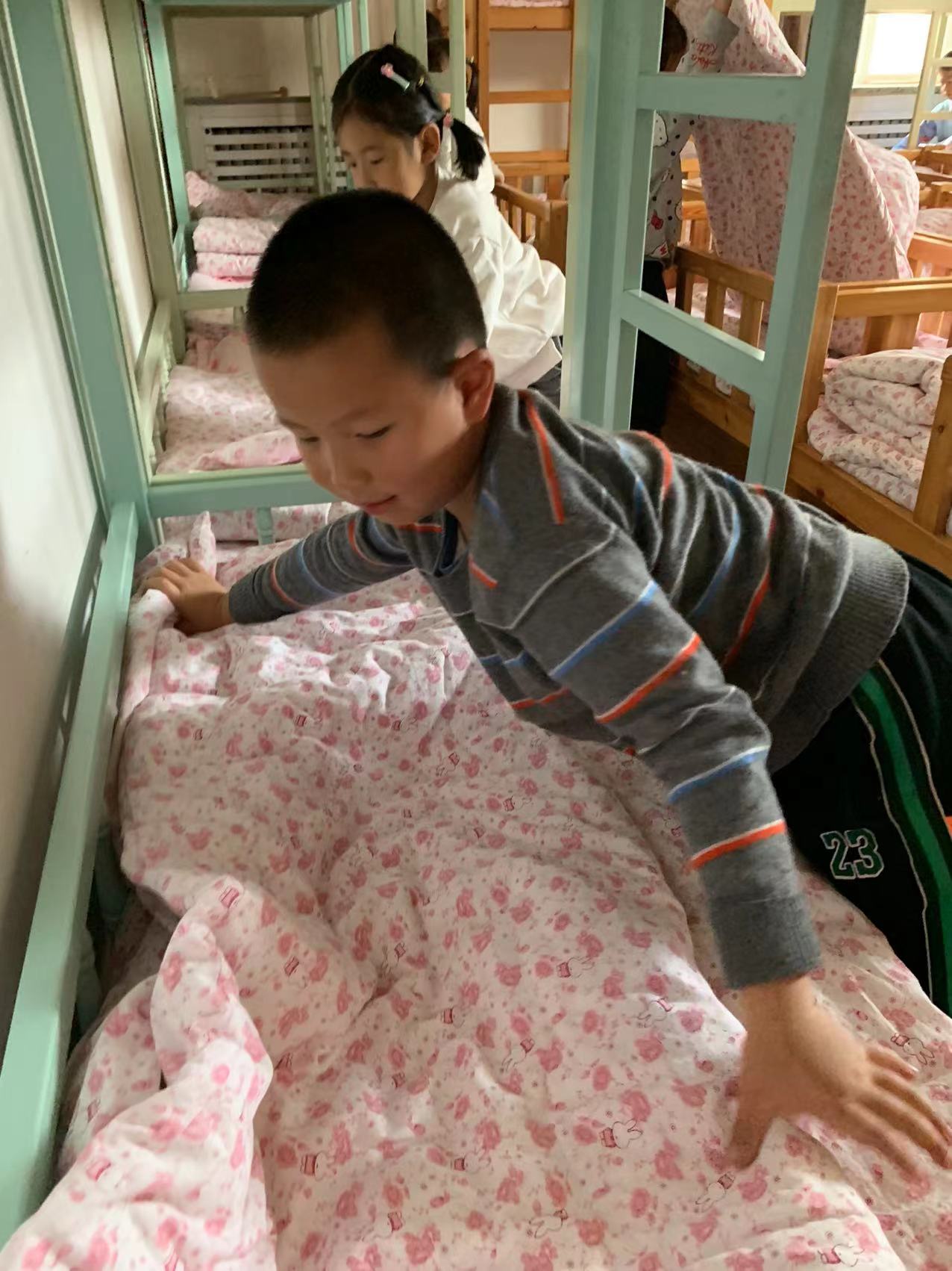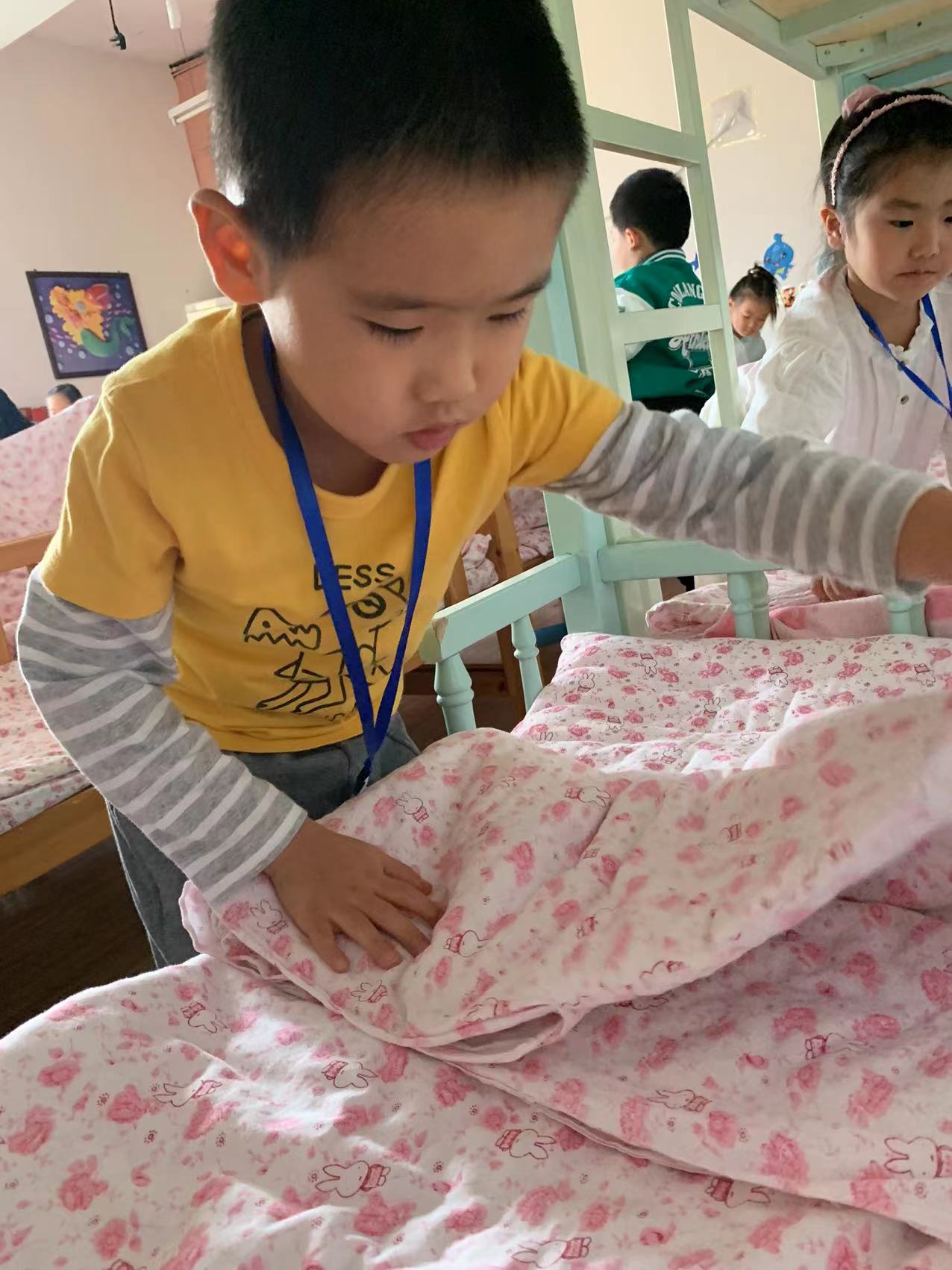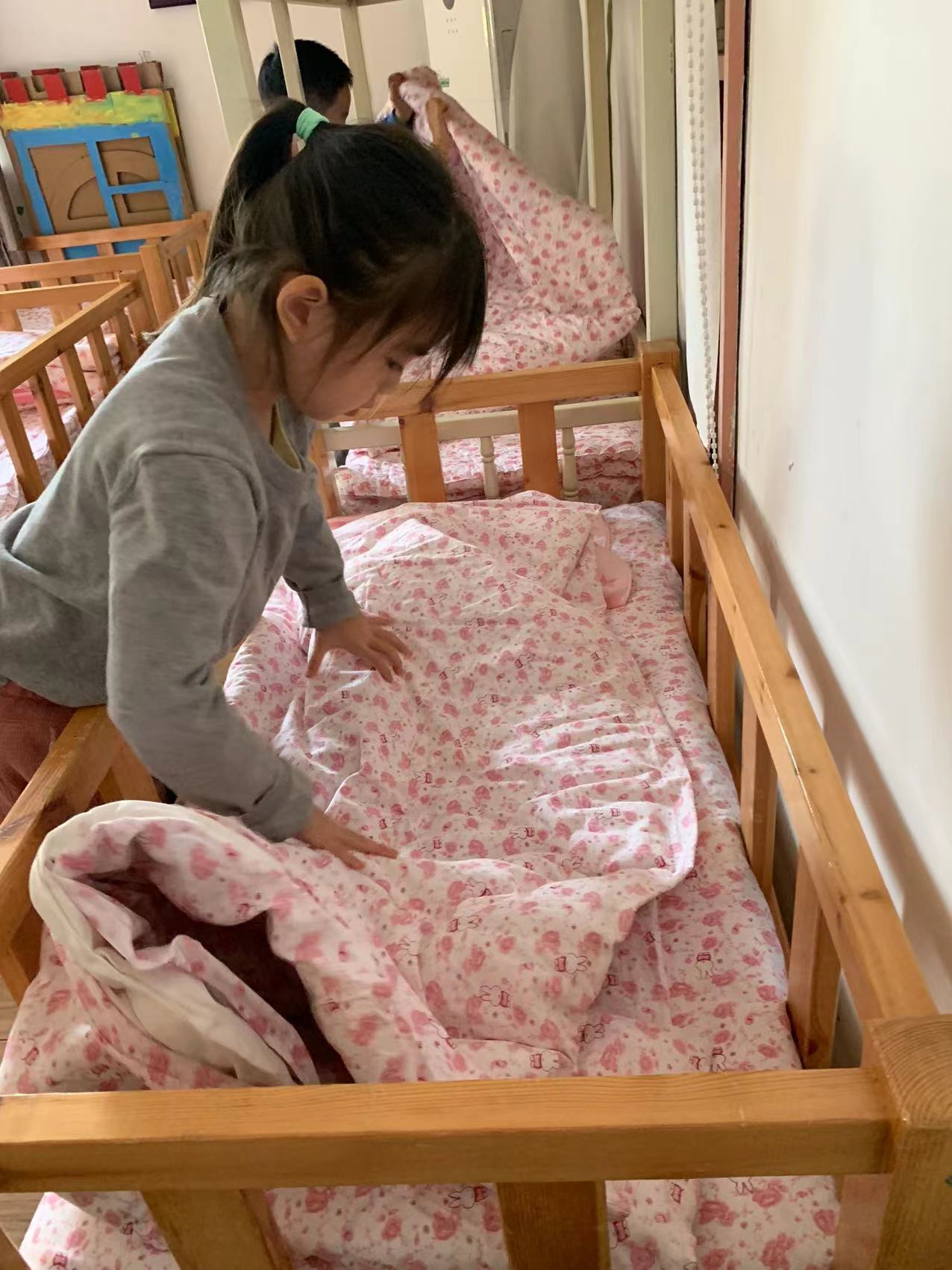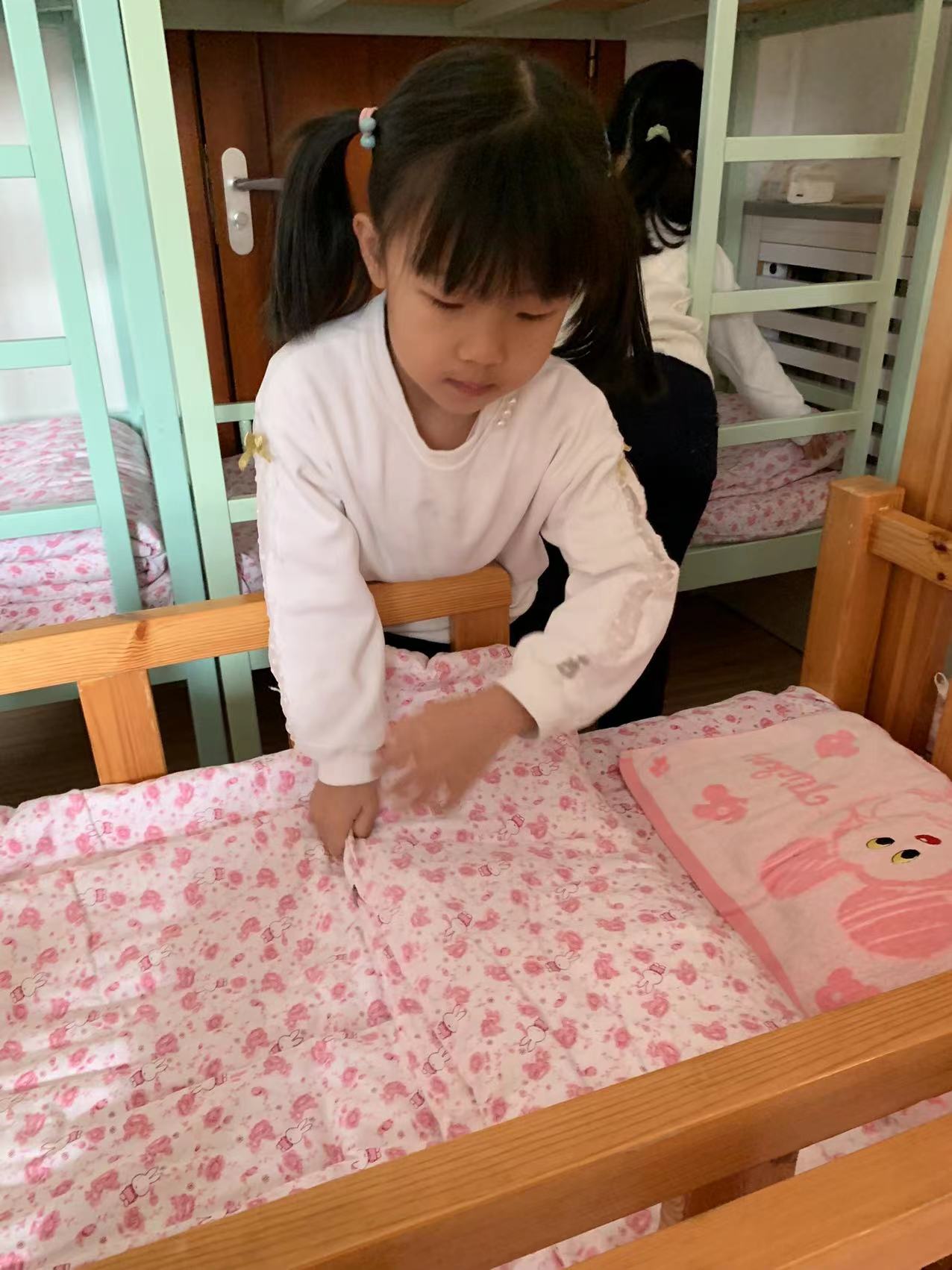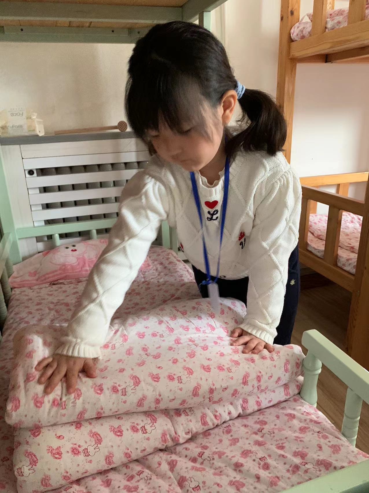 为了进一步提高幼儿的生活自理能力,学会自己的事情自己做,有效培养幼儿自我服务意识,果果一班开展了自理能力展示及比赛活动之--整理小床铺。