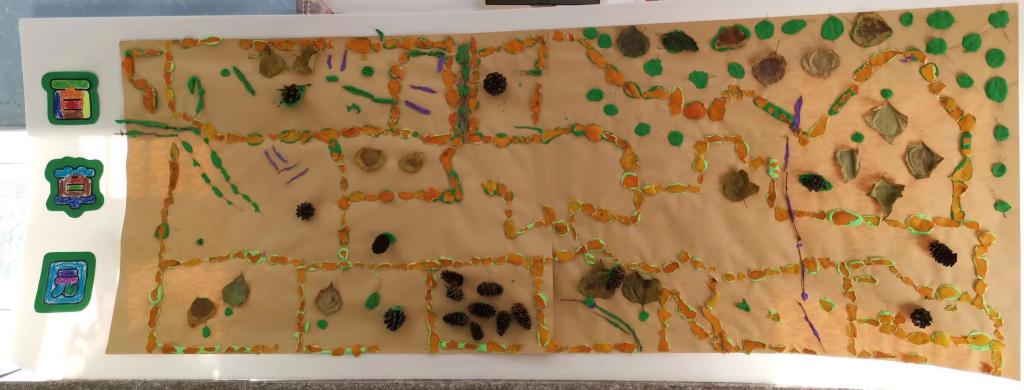 在搭建过程中孩子们发现一个问题,没有路怎么能在百草园中穿梭?他们开始思考解决的办法,并把自己的想法不断体现在展板上。