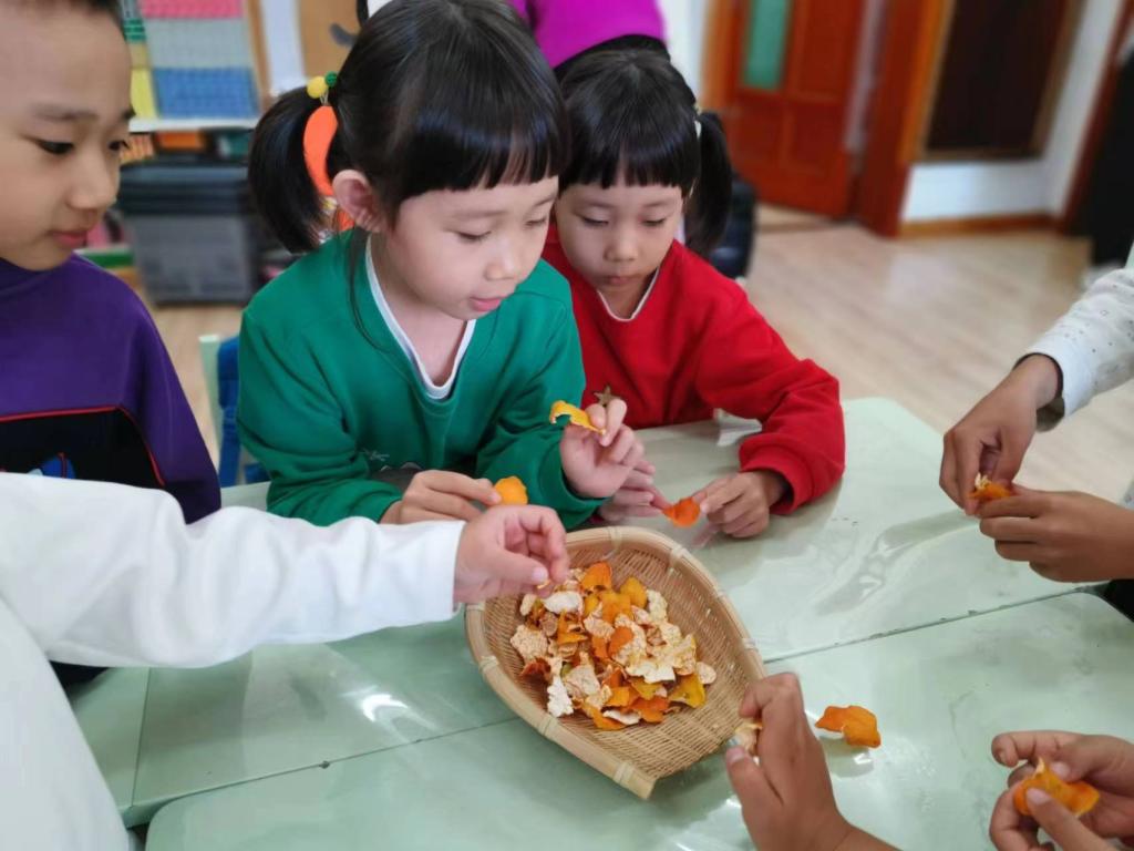 自班级主题活动“神奇的药用植物”开展以来,小朋友们积极地探索身边的药用植物,从小小的橘子起,吃完里面的果实,小朋友们就开始思索外面的橘皮能做什么呢?