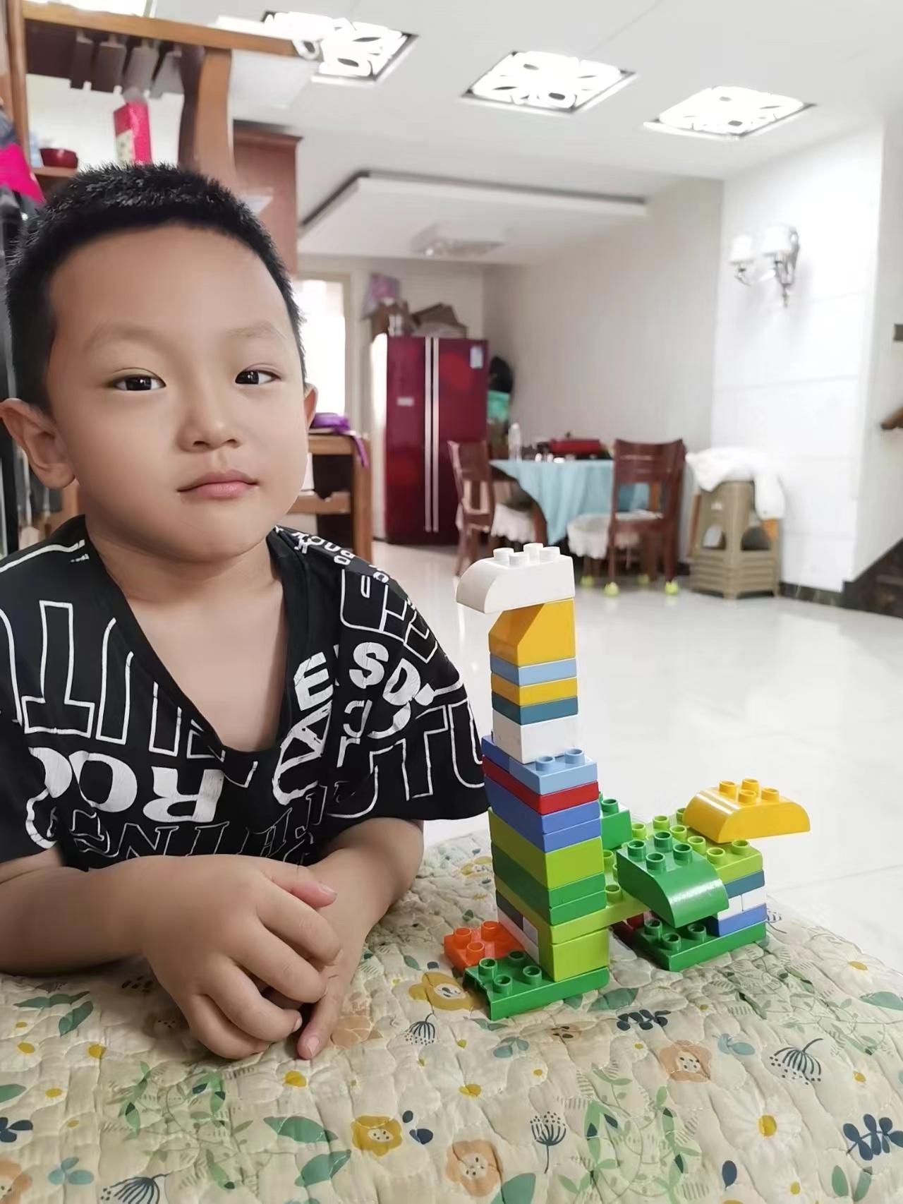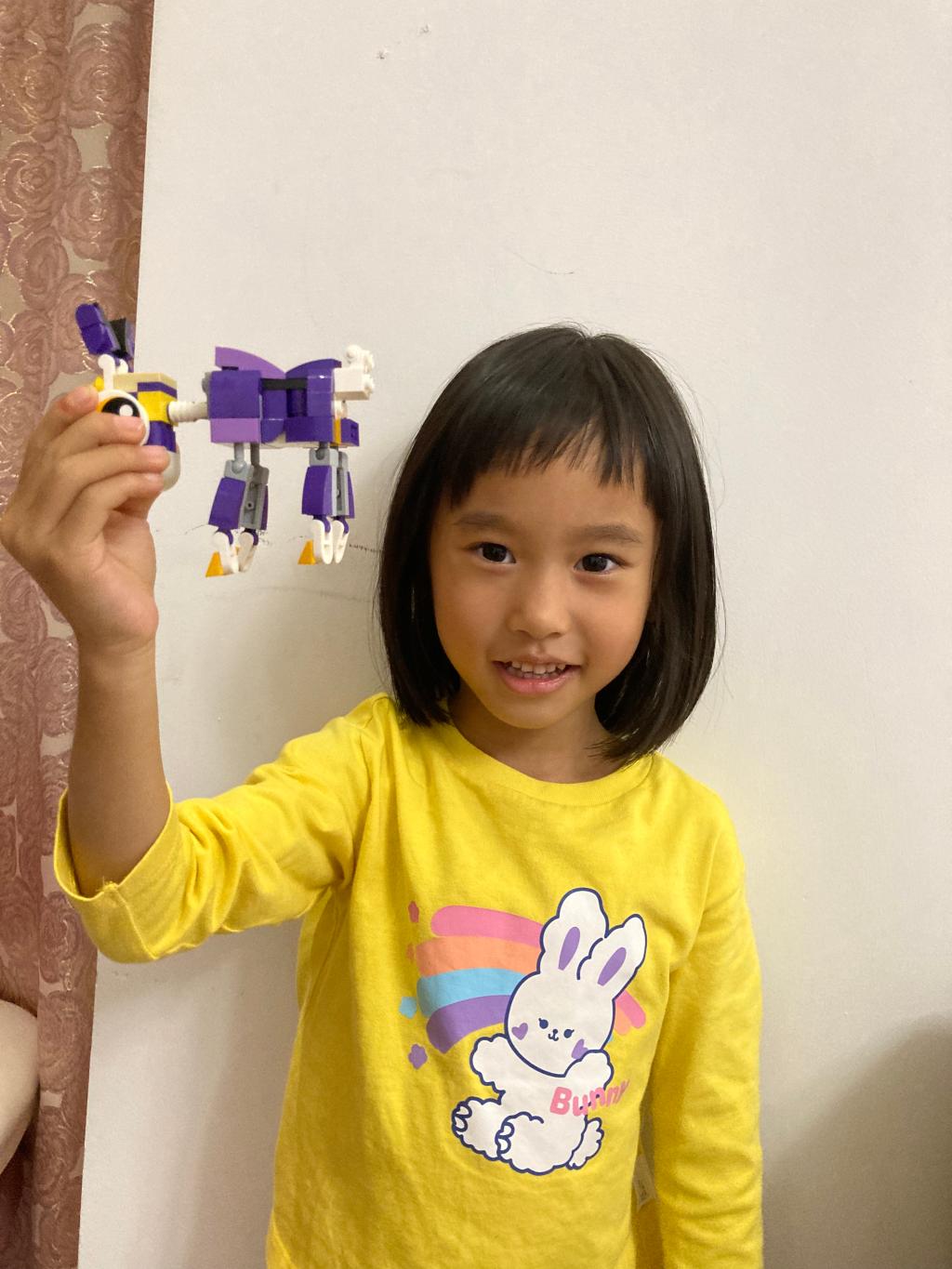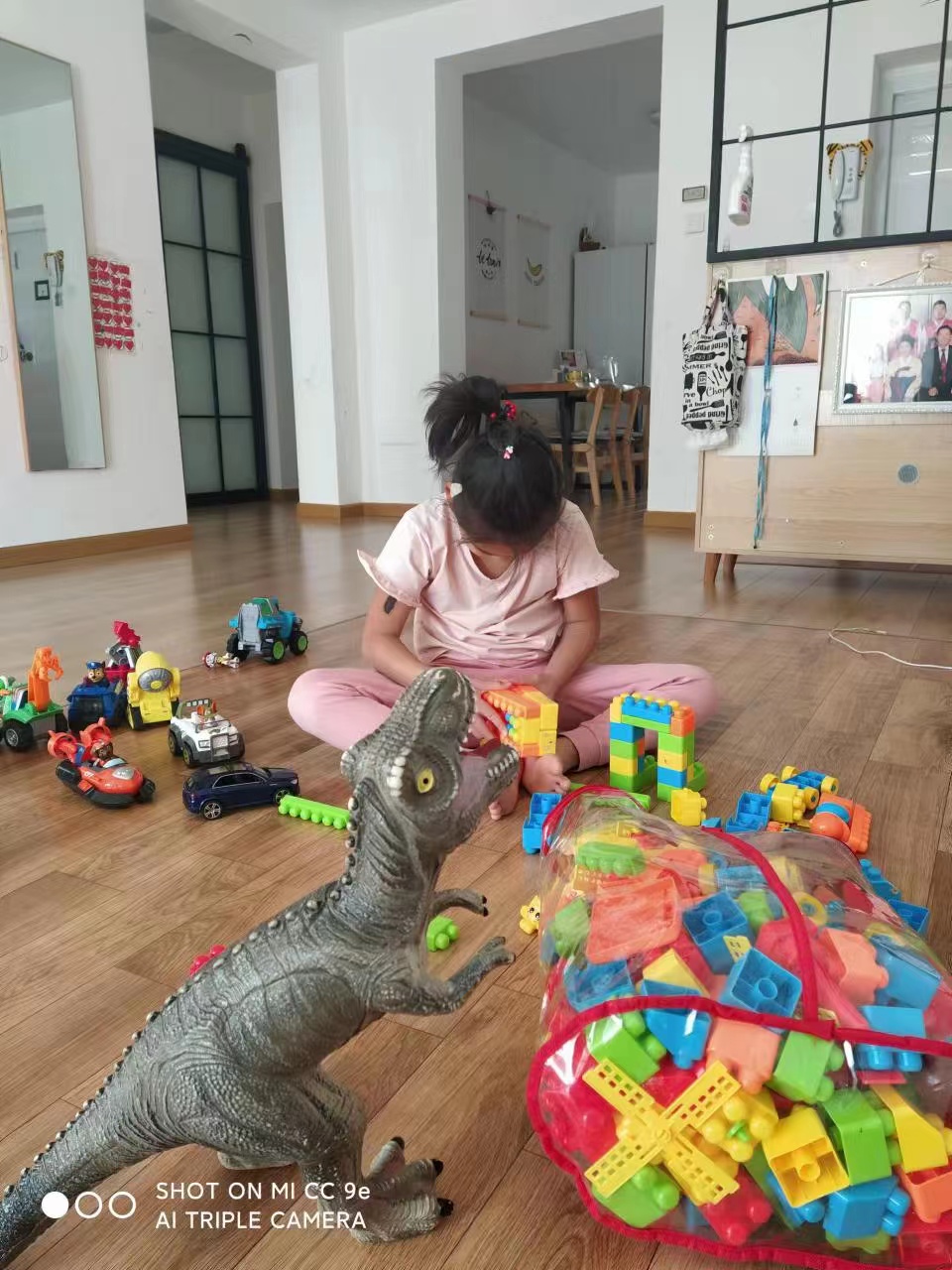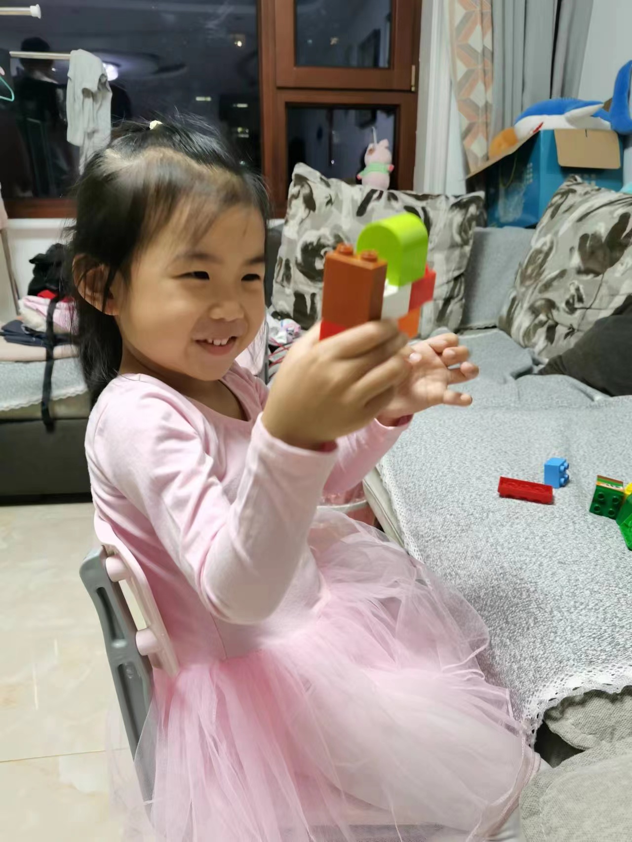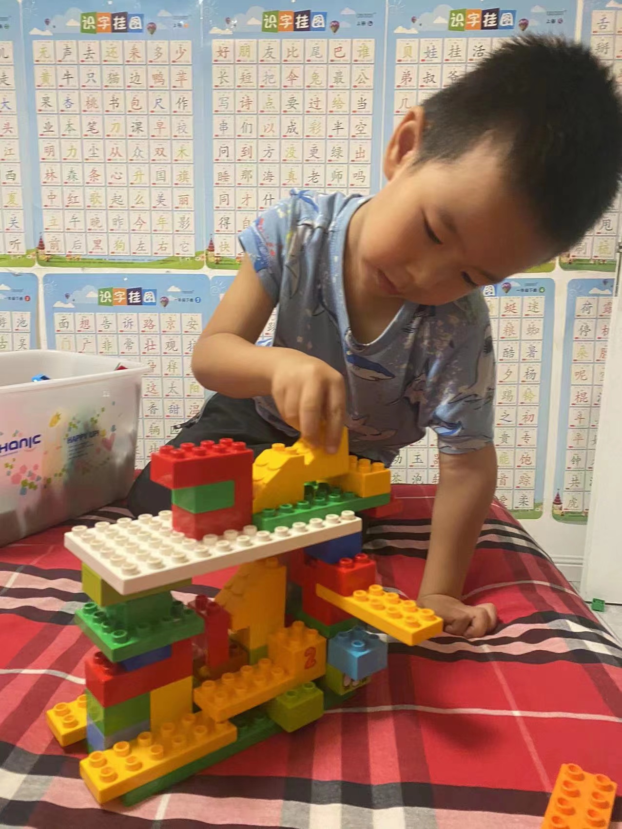 小朋友们利用家里的积木,创意搭建出形态各异的动物。