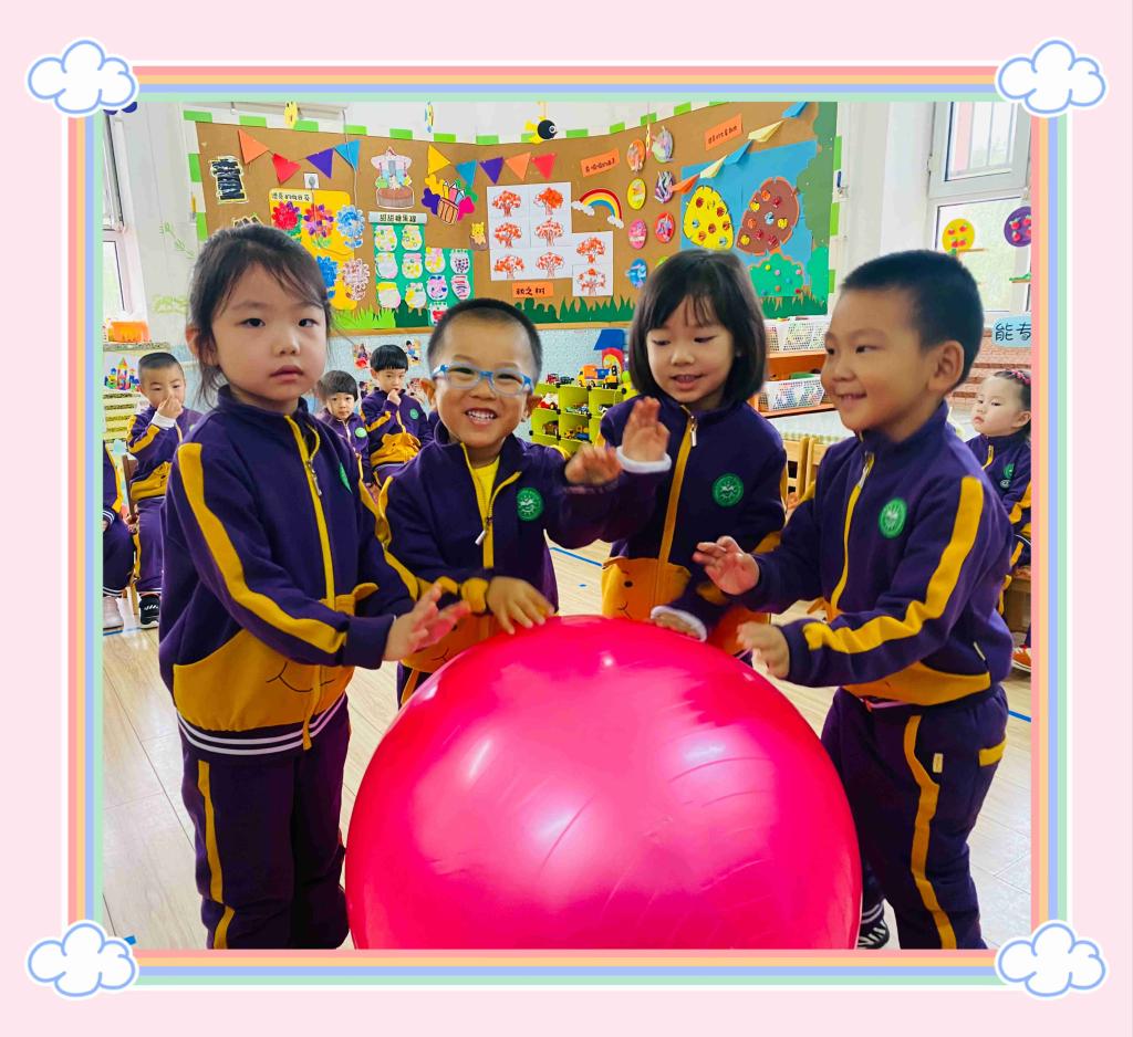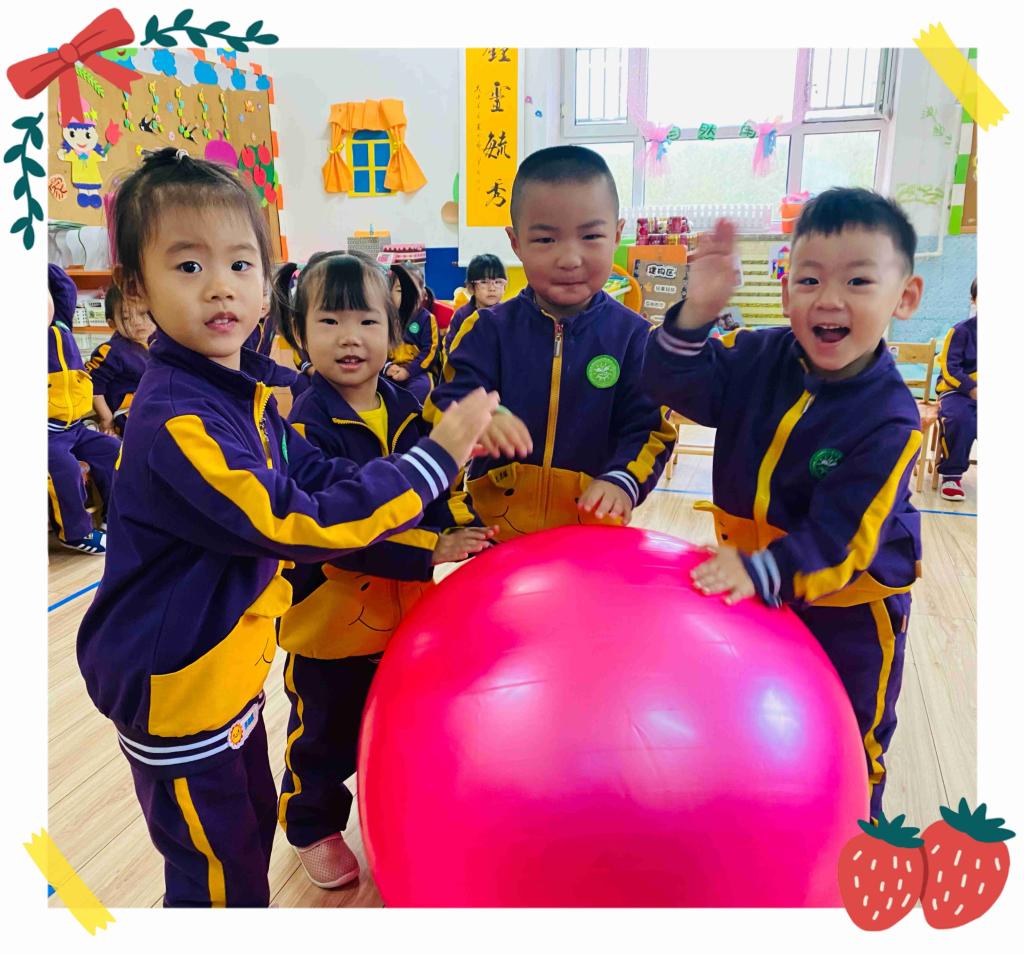 今天我们一起来玩瑜伽球,从和球一起跳到传球,到最后在彩虹伞上滚球,锻炼了小可爱们的手眼协调以及合作利用彩虹伞滚动瑜伽球能力,孩子们的能力都在自己原有的基础上得到了协调发展哦!