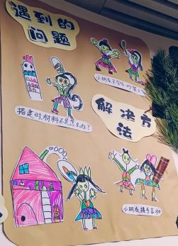 其实整幅作品的建构遇到了很多问题,比如小朋友们在分工与合作时发生了争抢材料的问题;也有制作一半发现材料不足的问题,我们坐下来一起商讨了解决办法。
