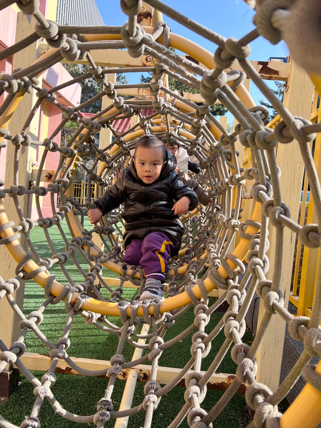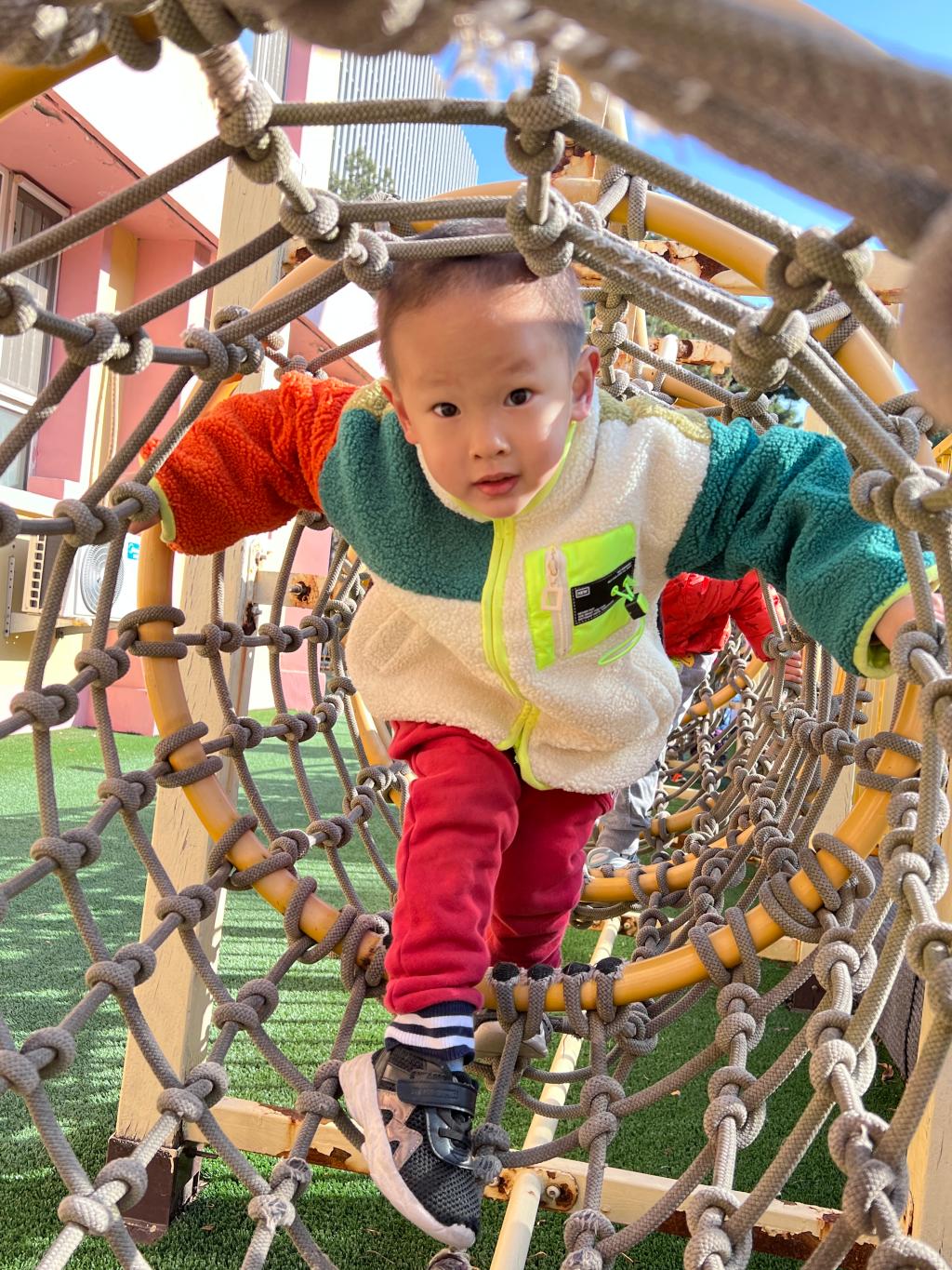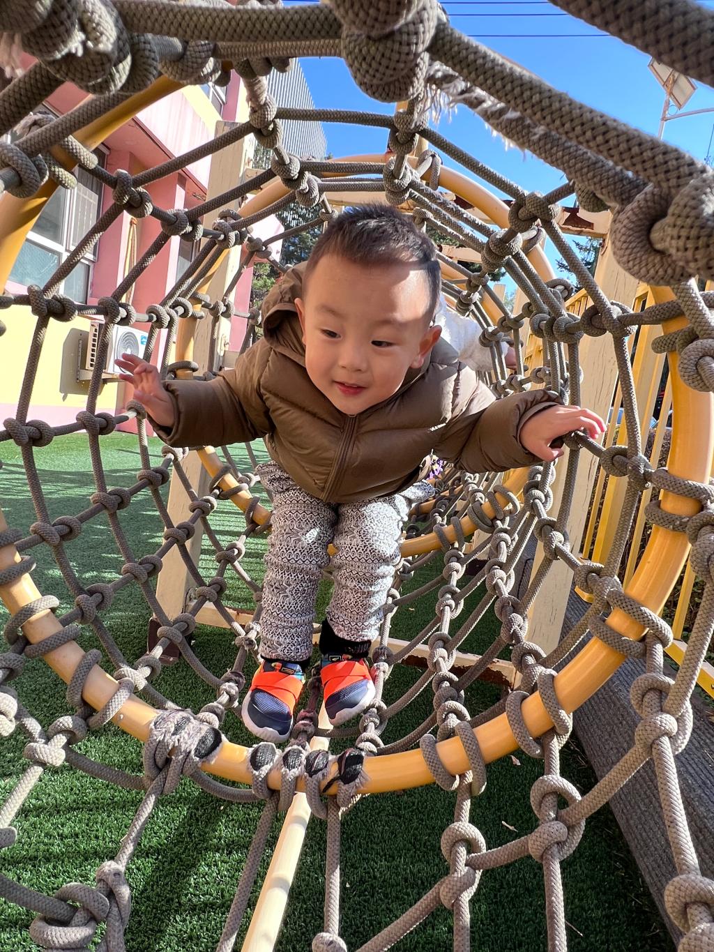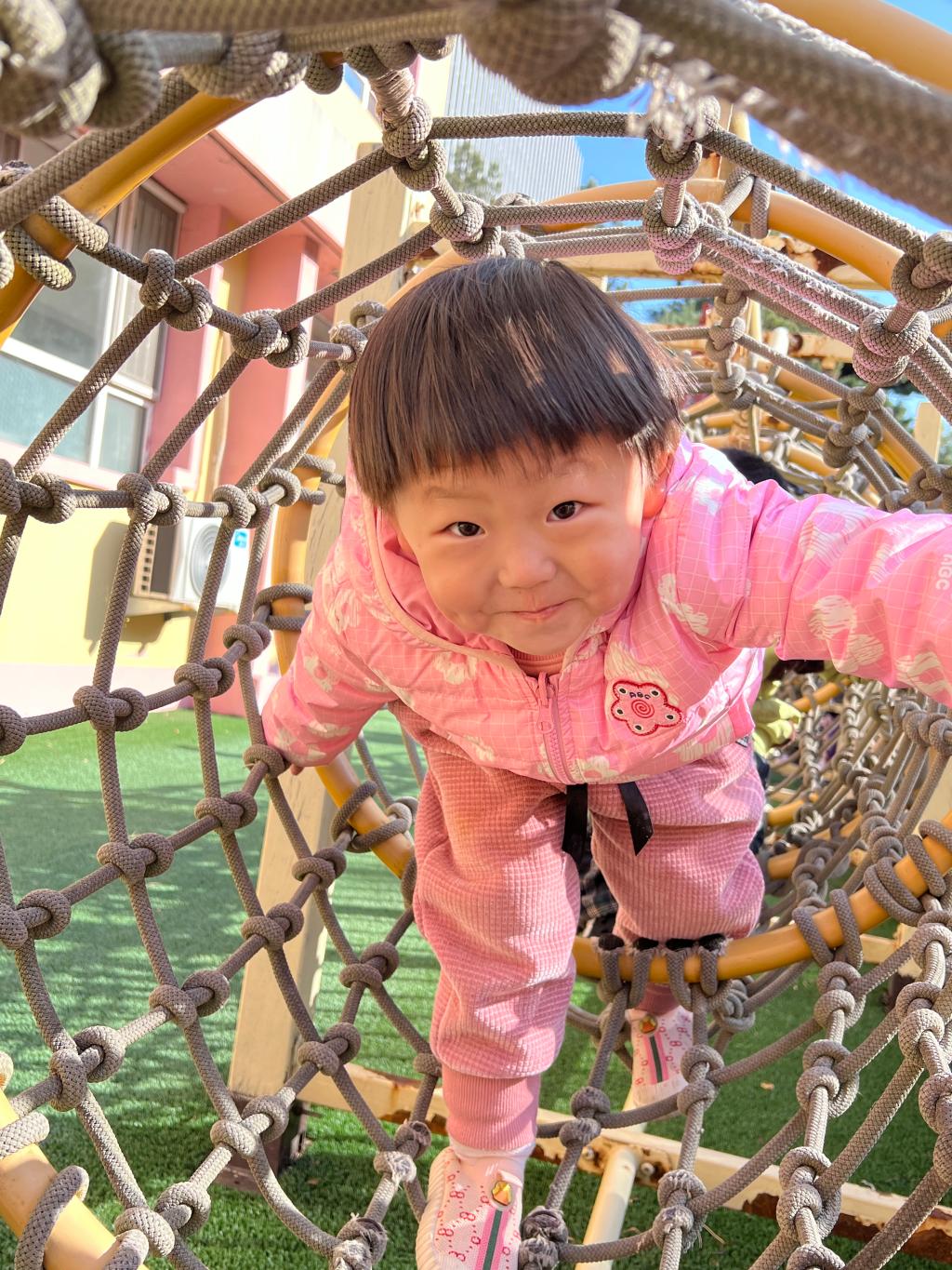 爬行是宝贝们一次全身协调运动,既可以锻炼胸肌、背肌、腹肌以及四肢肌肉的力量,也可以在爬行中消耗能量,有助于宝贝吃得多、睡得好。和宝贝们一起体验钻爬的快乐吧!