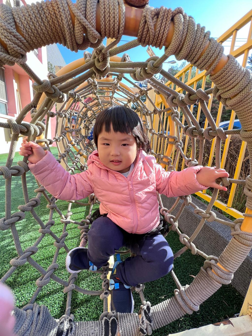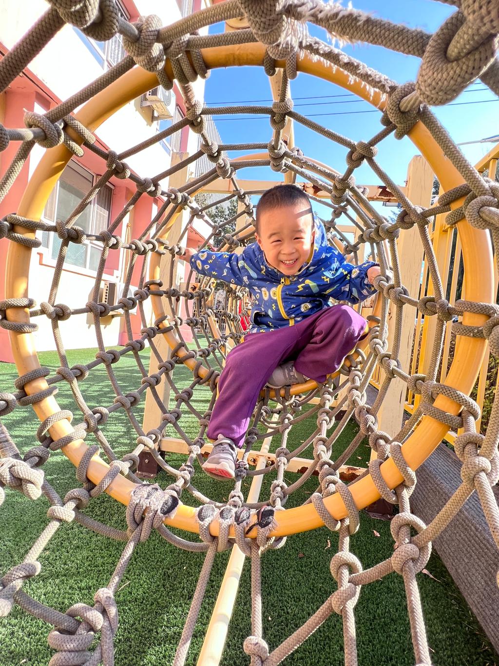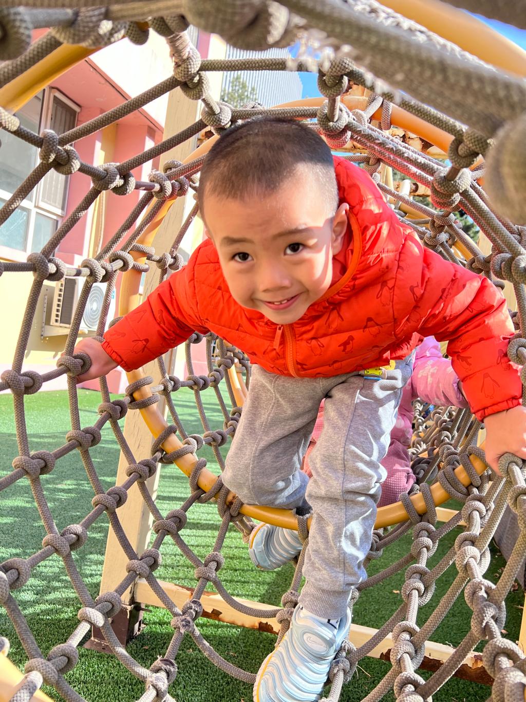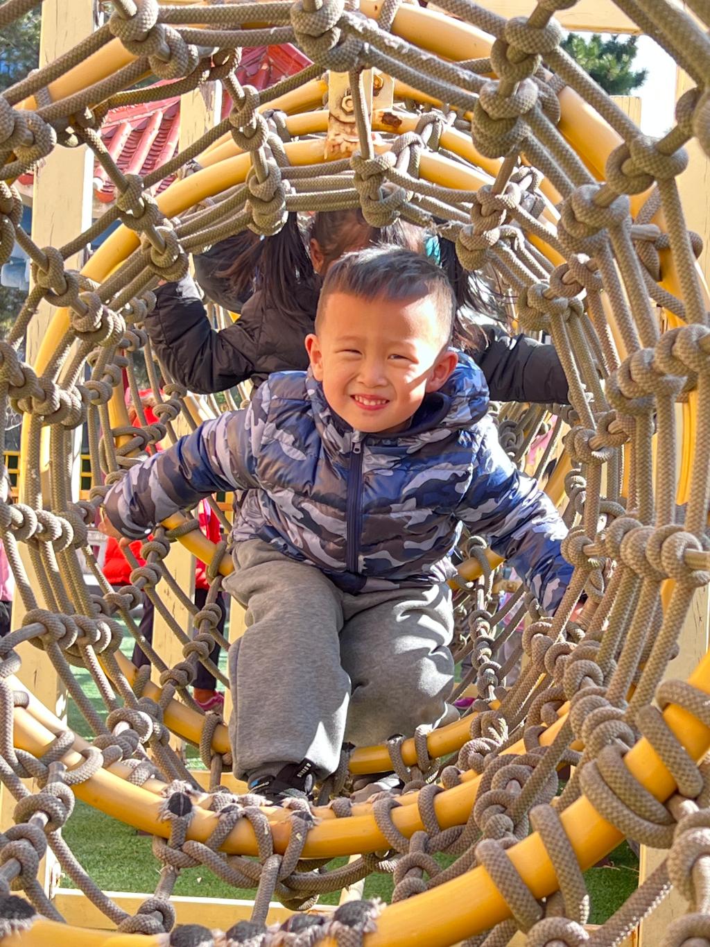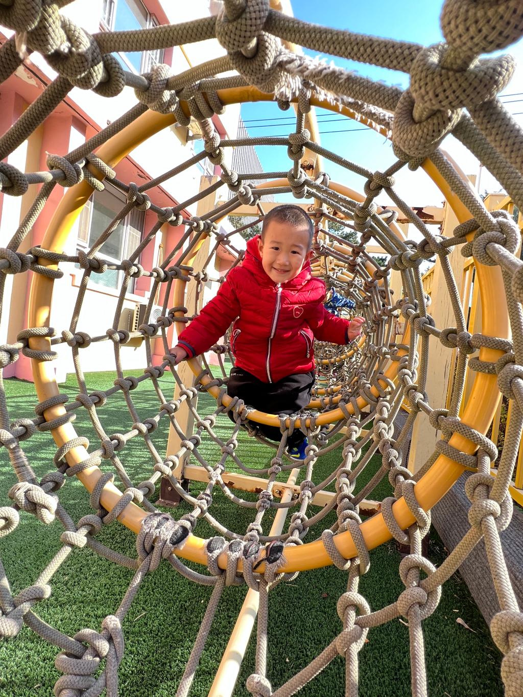 爬行是宝贝们一次全身协调运动,既可以锻炼胸肌、背肌、腹肌以及四肢肌肉的力量,也可以在爬行中消耗能量,有助于宝贝吃得多、睡得好。和宝贝们一起体验钻爬的快乐吧!