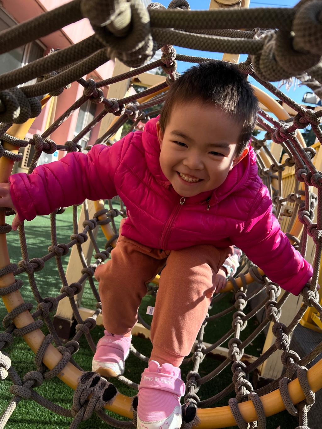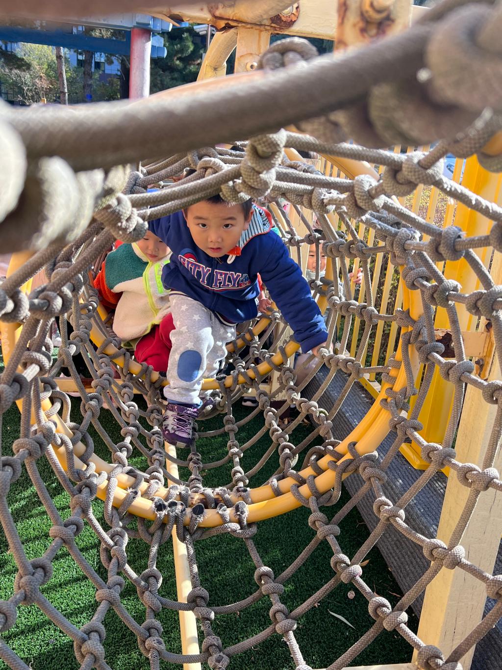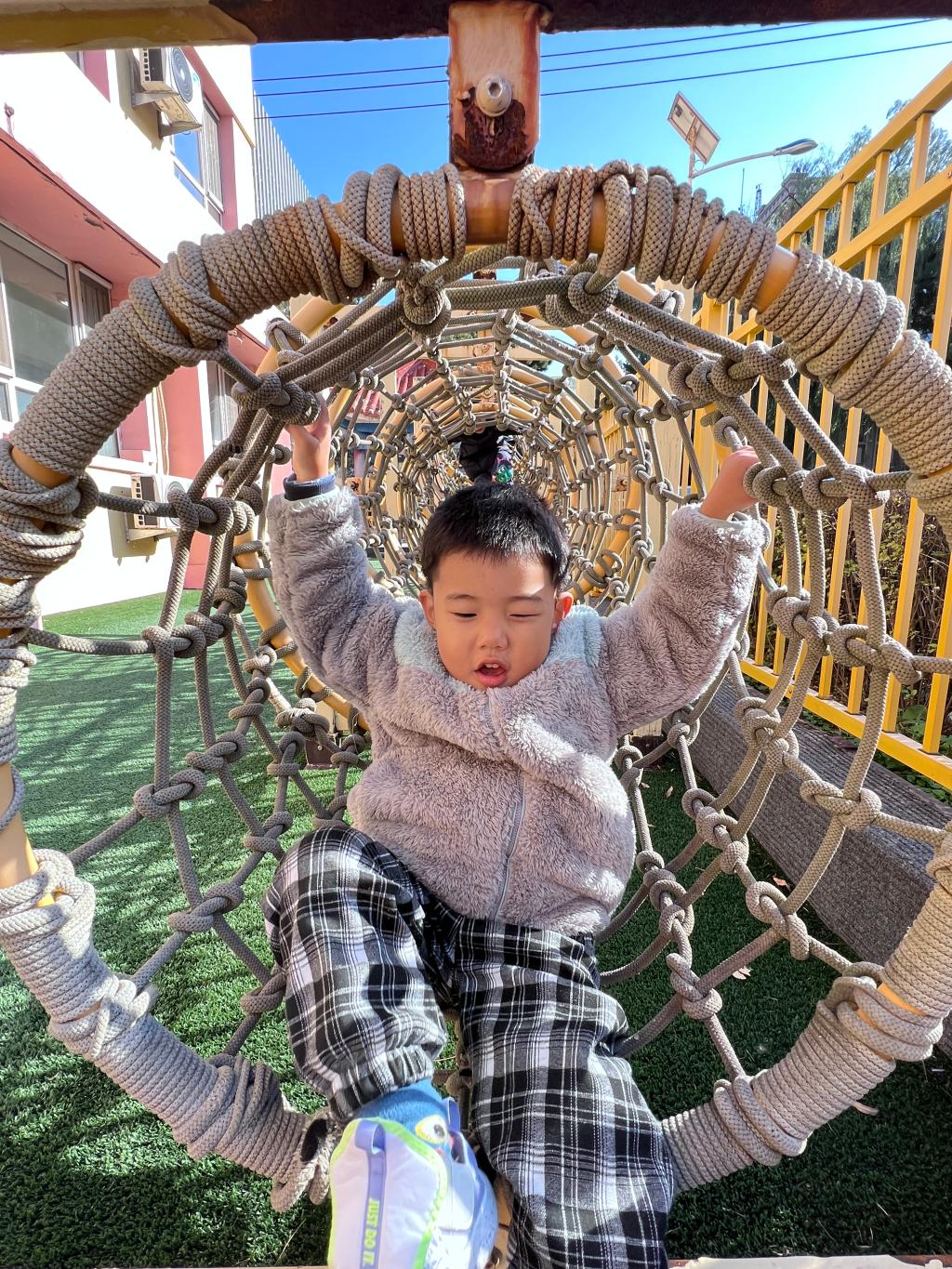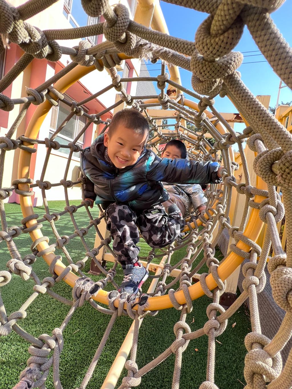 爬行是宝贝们一次全身协调运动,既可以锻炼胸肌、背肌、腹肌以及四肢肌肉的力量,也可以在爬行中消耗能量,有助于宝贝吃得多、睡得好。和宝贝们一起体验钻爬的快乐吧!