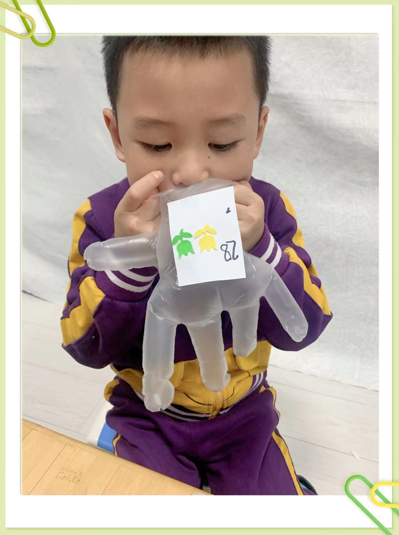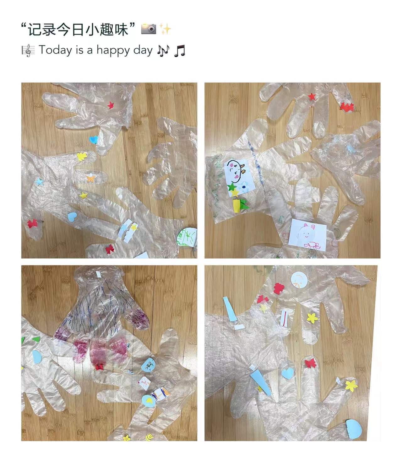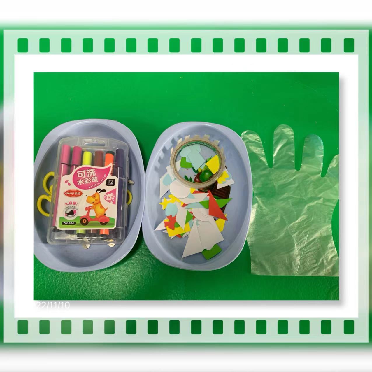 材料准备:塑料手套 彩纸图形 剪刀 胶带 彩笔