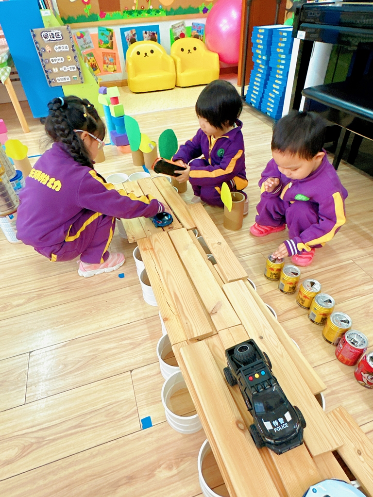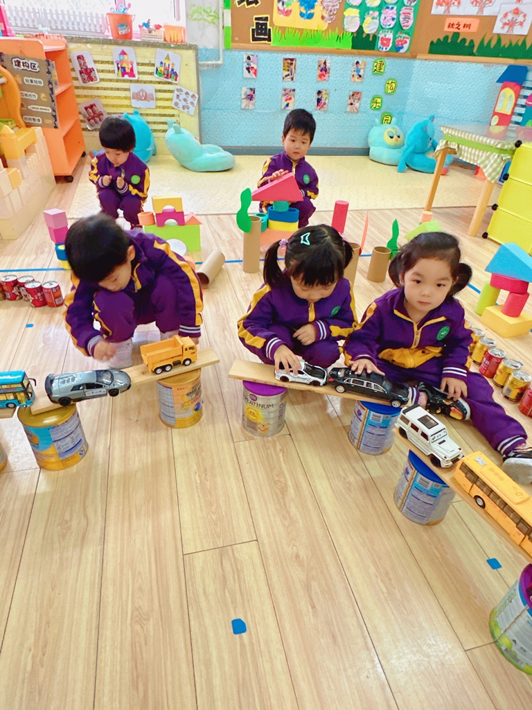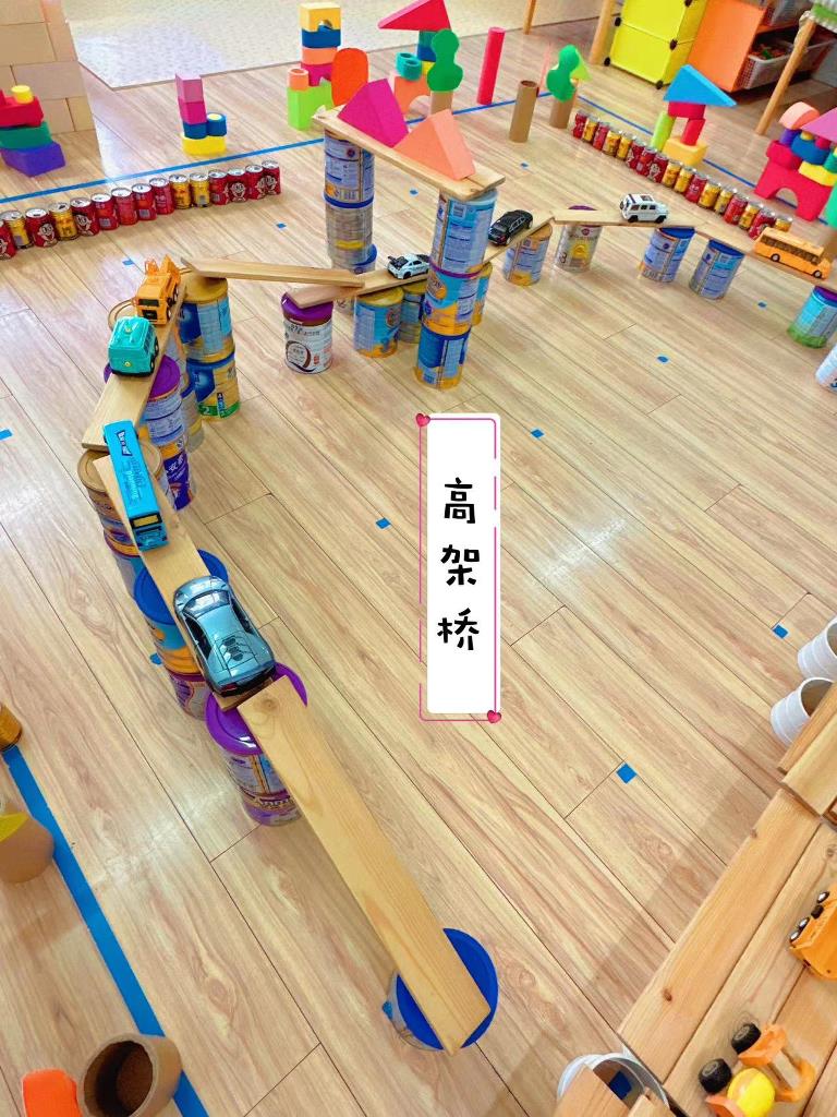 于是讨论后,小朋友们开始进行分组,有的有的搭高架桥,有的搭房子等。