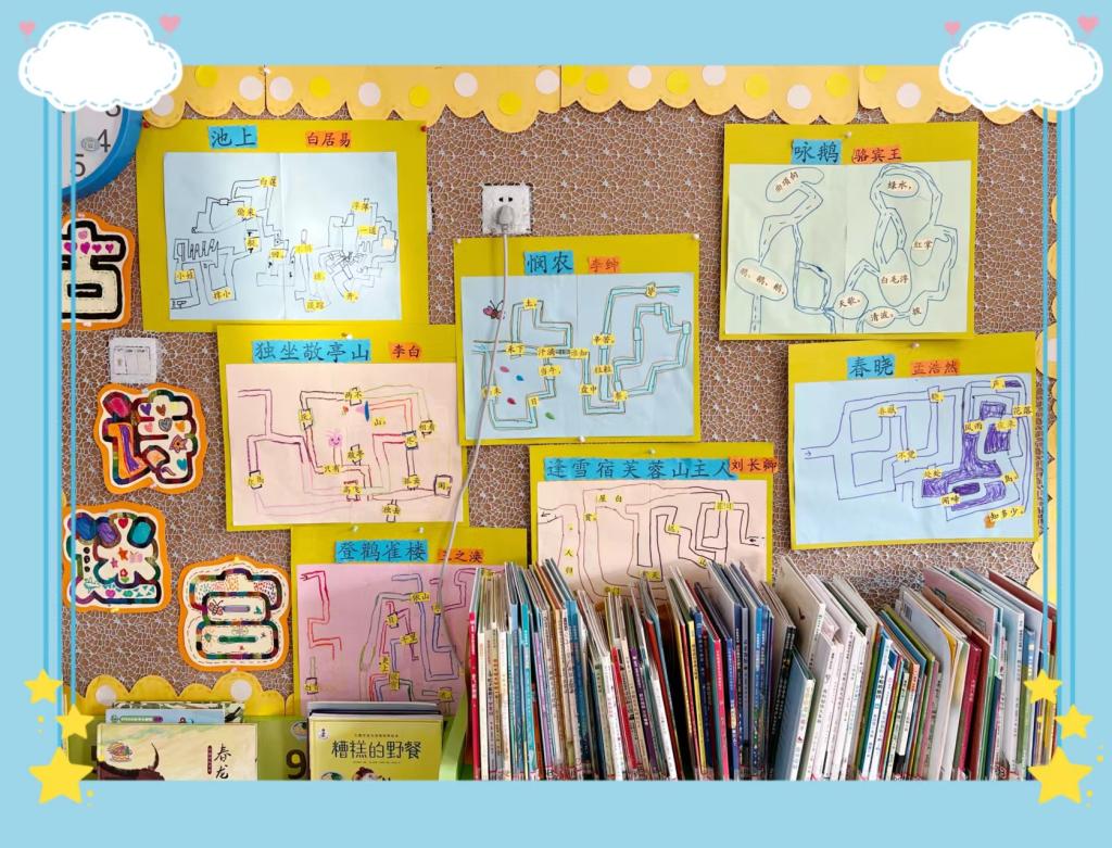 古诗和成语的学习不再枯燥,一方面可以利用配插画的形式,将理解的涵义以书画的形式表达出来;也可以利用“古诗”迷宫的方法,将古诗装进迷宫里,帮助幼儿在游戏中记忆古诗。
