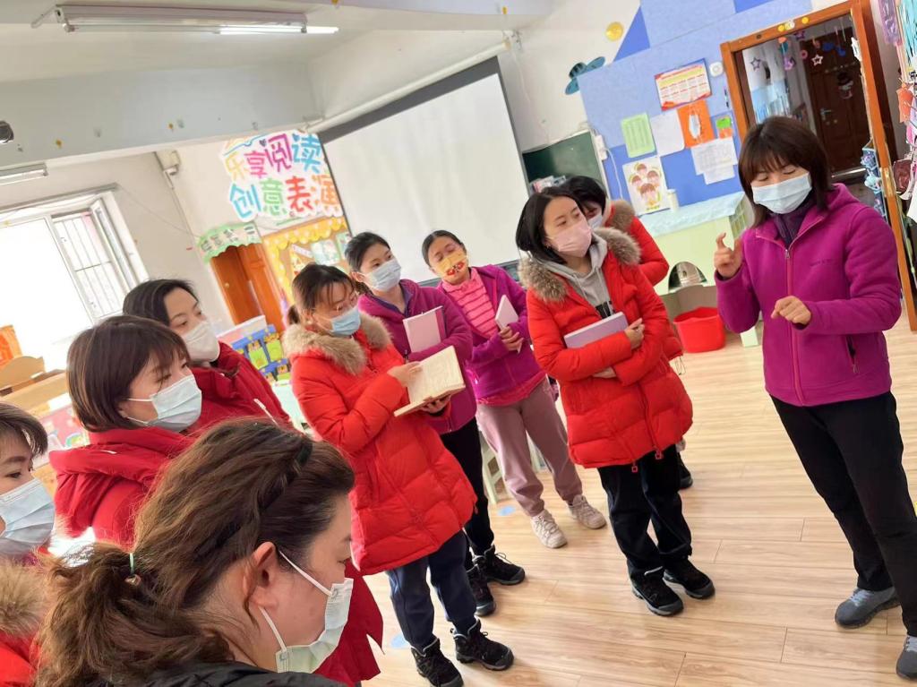 如何让墙面符合幼儿的审美和兴趣,为幼小衔接做服务,各班教师采用讲解、现场观摩的形式,针对本班特色的室内外环境、公共环境和游戏区域的创设及材料的投放等方面做了交流分享。