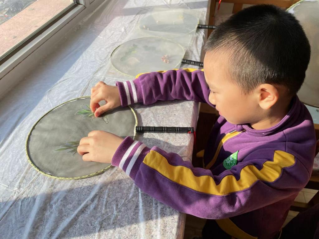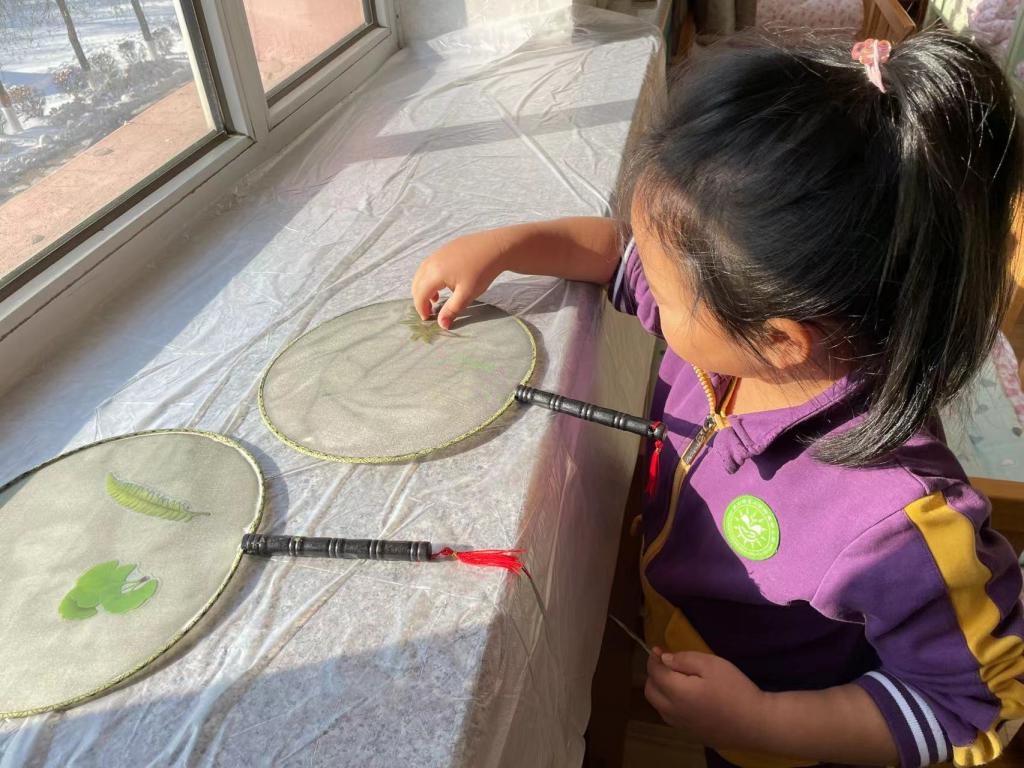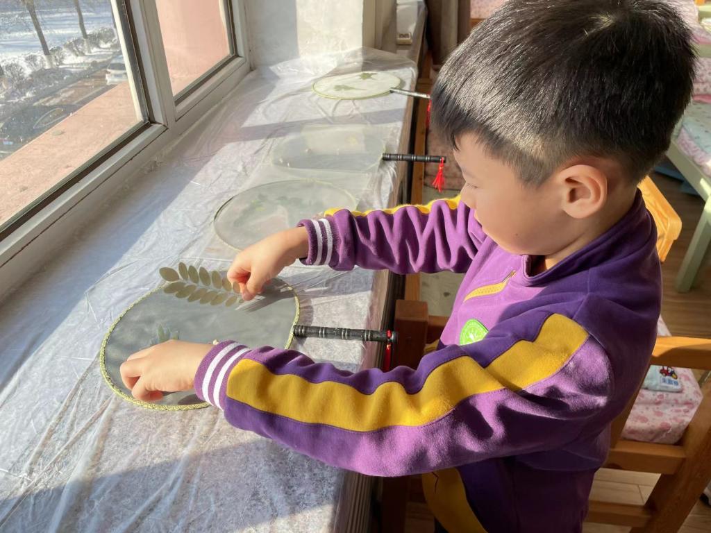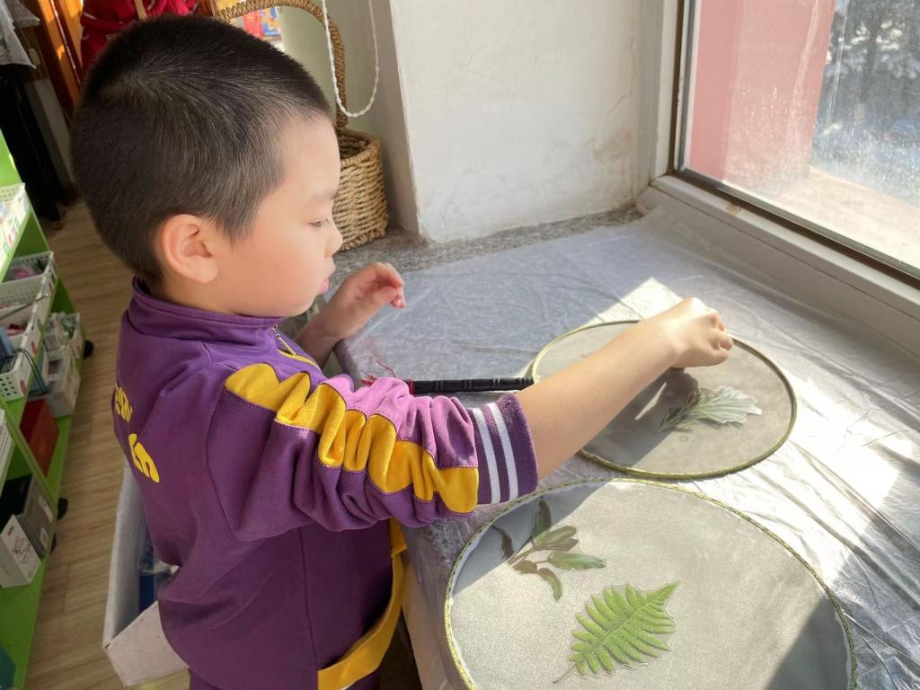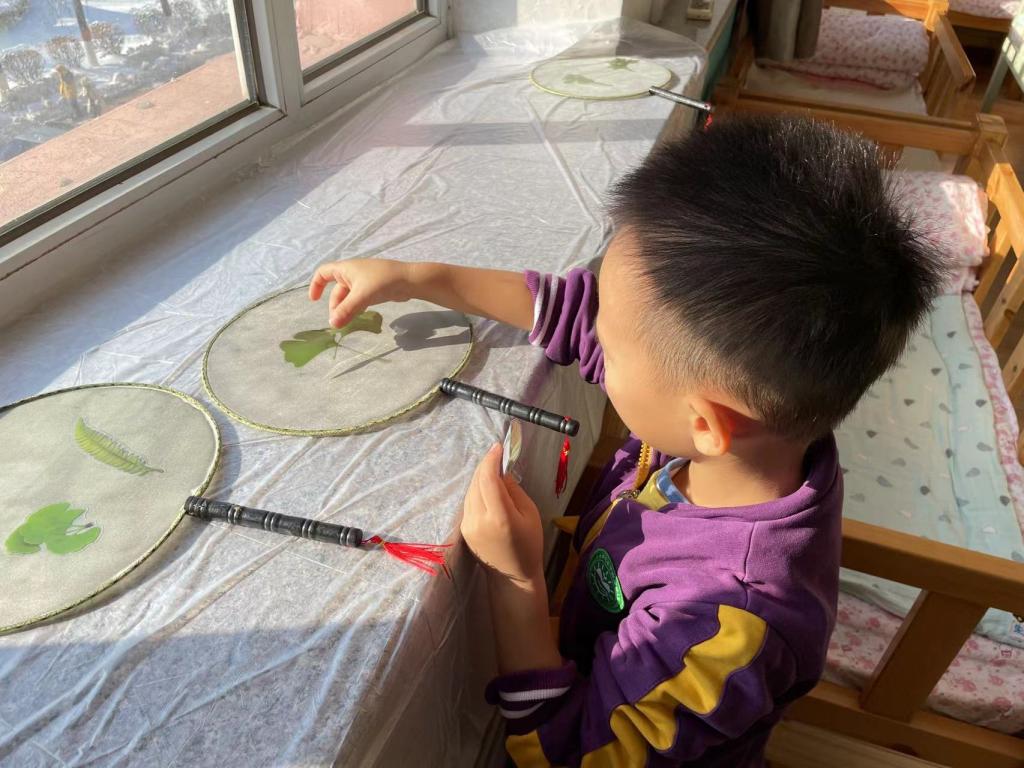 通过这次科技创意活动,小朋友们动手参与了古老的照片冲印方法——蓝晒法,看到了经典的蓝色颜料——普鲁士蓝。在冲洗过程中,看着植物的轮廓一点点呈现在团扇上,情不自禁的发出惊呼之声。在留住秋天的活动中,小朋友们了解了树叶变色的秘密,在探索中发现植物色素印在纸上时都感到前所未有的兴奋和满足。小朋友们一边感叹科技的神奇之处,一边开启了童年的科学之梦。