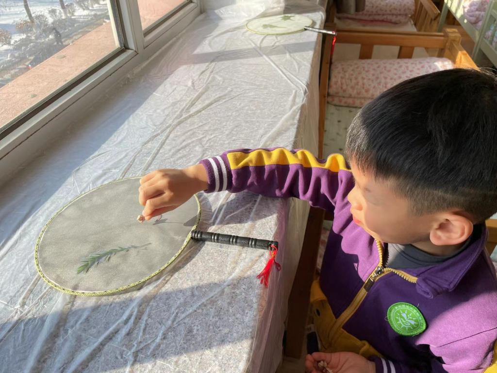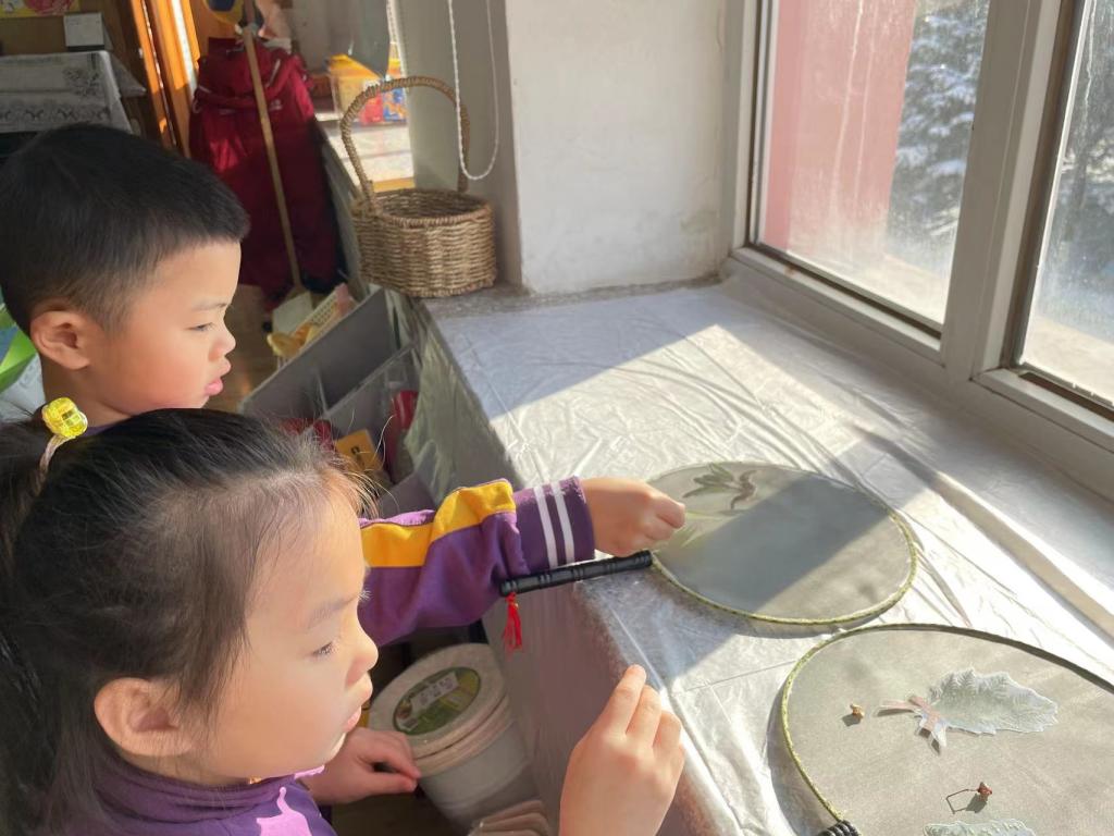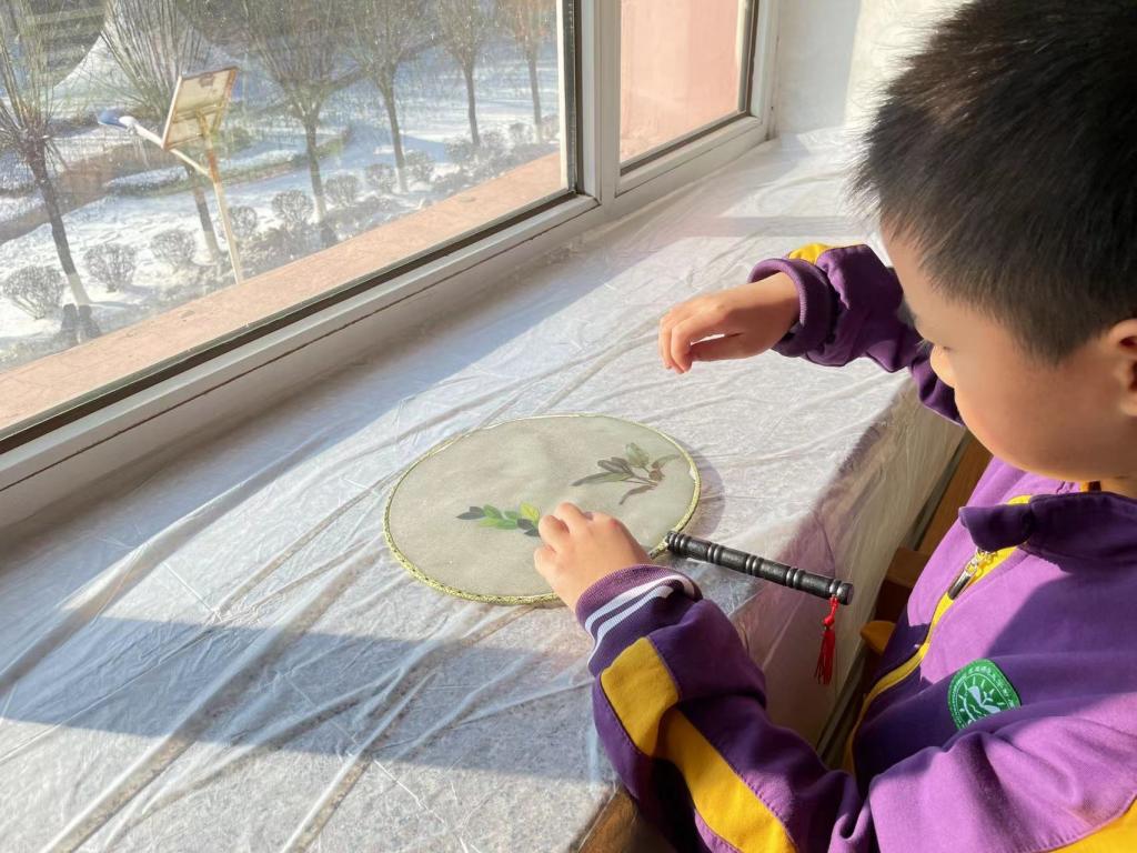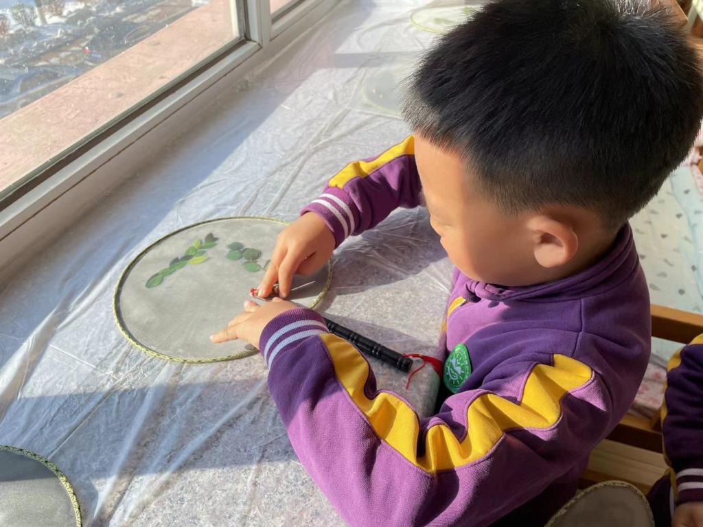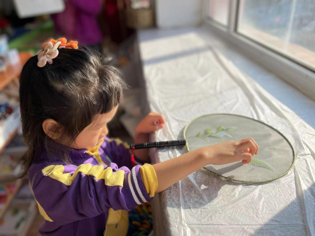 通过这次科技创意活动,小朋友们动手参与了古老的照片冲印方法——蓝晒法,看到了经典的蓝色颜料——普鲁士蓝。在冲洗过程中,看着植物的轮廓一点点呈现在团扇上,情不自禁的发出惊呼之声。在留住秋天的活动中,小朋友们了解了树叶变色的秘密,在探索中发现植物色素印在纸上时都感到前所未有的兴奋和满足。小朋友们一边感叹科技的神奇之处,一边开启了童年的科学之梦。
