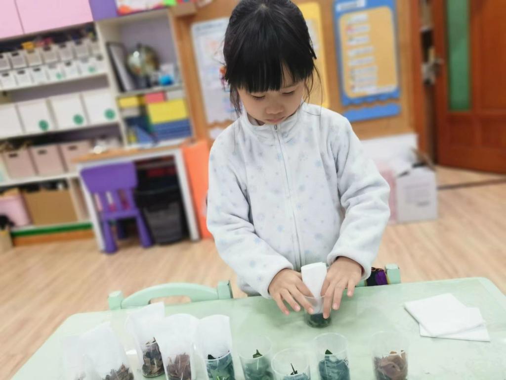 随着冬季的来临,秋季已经落下帷幕。小朋友们还没欣赏够秋天的美丽景色,白雪就已经覆盖了大地。小朋友们一直在思考,有什么办法能让秋天多停留一会呢?在主题活动“植物如何过冬”中,小朋友们在了解树叶为什么会掉落、植物怎么过冬后,又对留住秋天的方法展开了讨论。