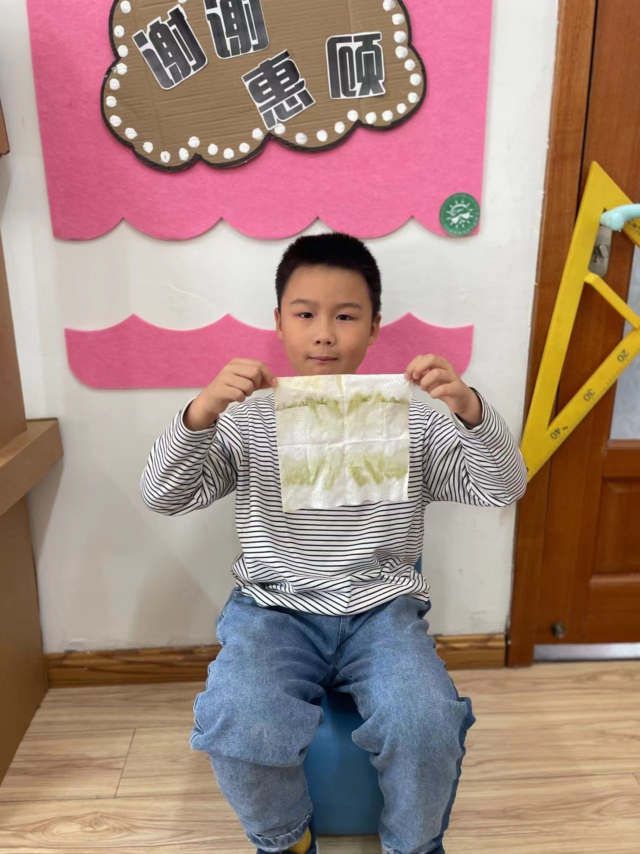 剩下的就交给时间了,在静待一天后,小朋友们惊喜的看到美丽的颜色已经被印在纸上啦!