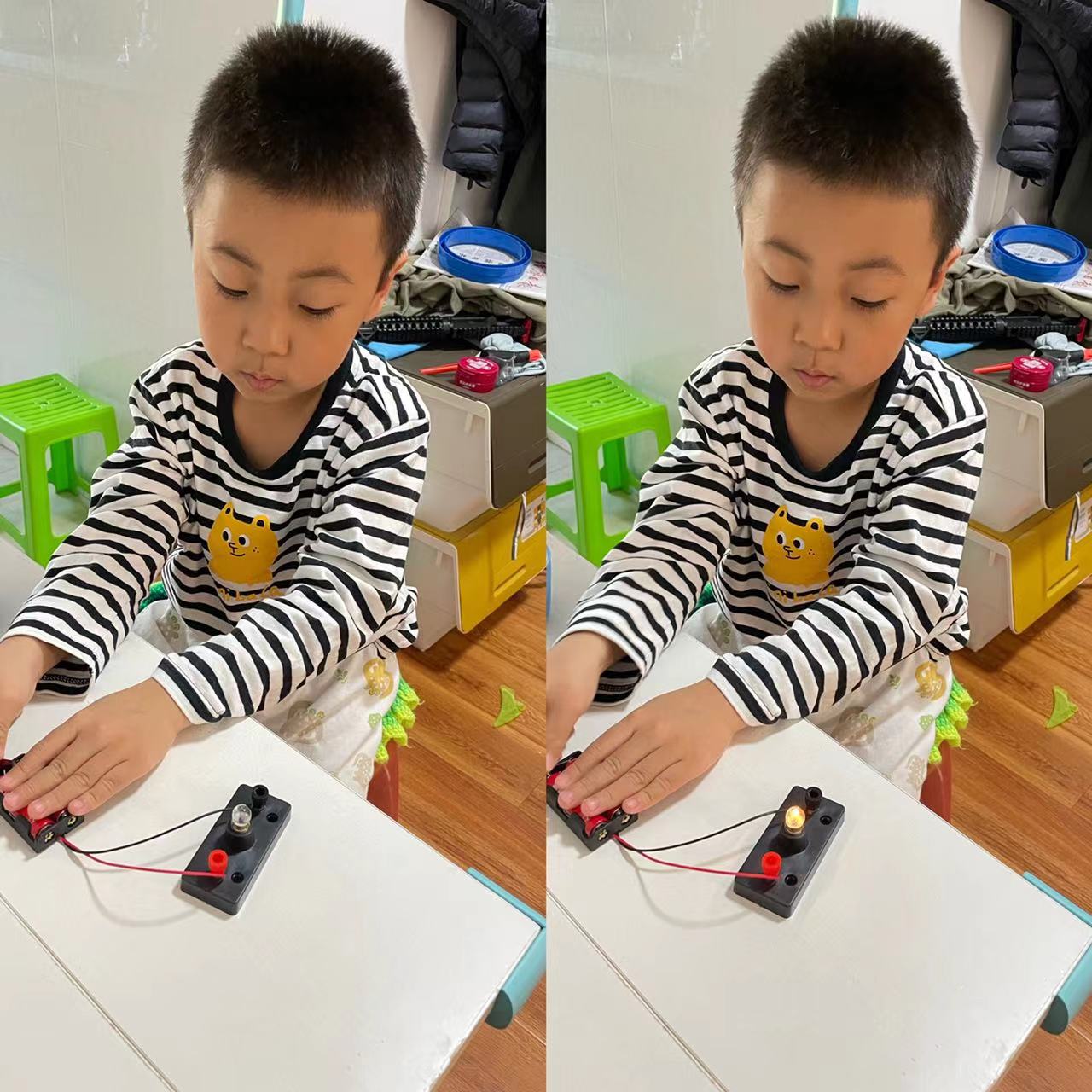 科学探索远不止原理所说的那么简单,科学的世界还有很多新奇有趣的现象等待小朋友们去发现和探索。本次“我发现 我探索 我创造”科技创意活动,激发了朵朵一班小朋友们的探究兴趣。他们积极探索,亲身实践,感受着科学的神奇。热爱探索的小朋友个个都是小小科学家!