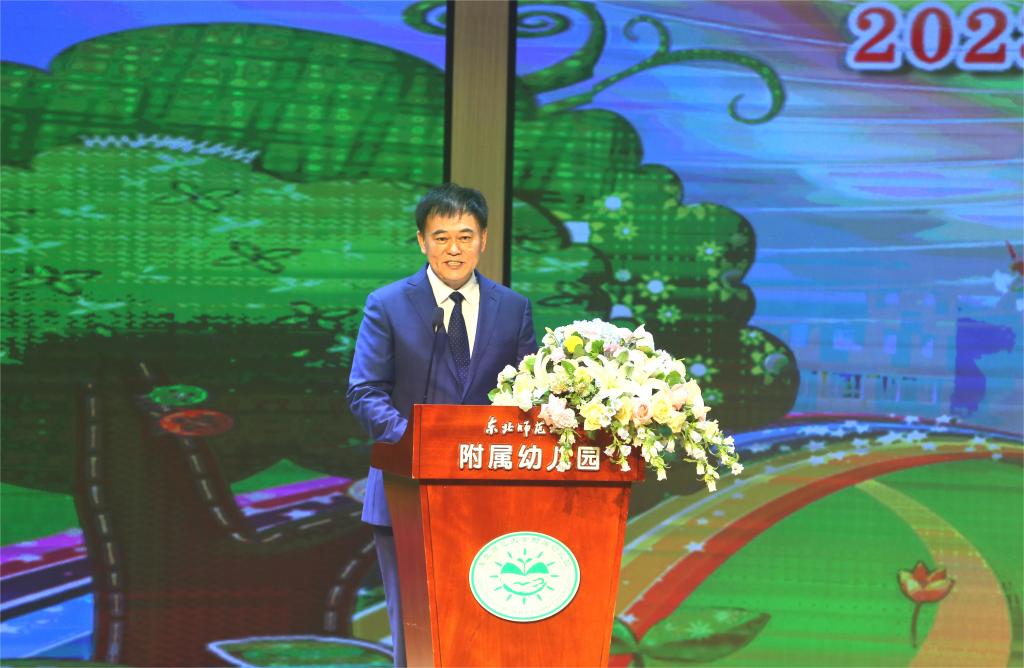 东北师范大学校长徐海阳、东北师范大学党委副书记王延、东北师范大学关工委副主任孙建智、东北师范大学纪检委副书记孙立伟、人事处处长谷国锋、附校办主任赵树峰、后勤保障部书记杨兴军、妇委会主席康秀云、心理学院党委书记程琪、音乐学院书记管立国、美术学院书记张群、体育学院书记范尧、工会副主席孙阳、教育部幼儿园园长培训中心副主任石艳、张忠斌、东北师范大学附属实验学校幼儿园园长赵明、园老领导廖桂春、韩秀珍、高华等领导应邀参加此次活动。幼儿园书记常佰城主持此次活动。