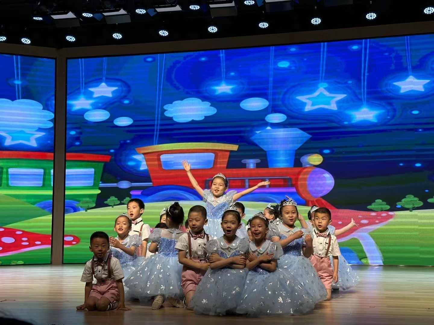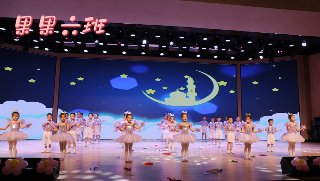 灿烂的附幼璀璨夺目;温馨的附幼闪烁光芒。让我们踏着白云之路、伴着星星之光,跟随果果五班小朋友的情景舞蹈表演,一起把未来点亮。