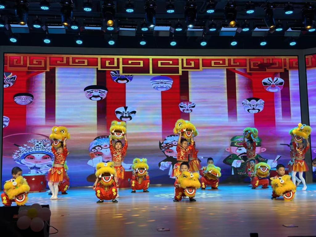 演出中,小朋友表演了舞狮、音乐舞蹈剧、情景舞蹈等精彩纷呈的文艺节目,脸上洋溢着快乐与自信。