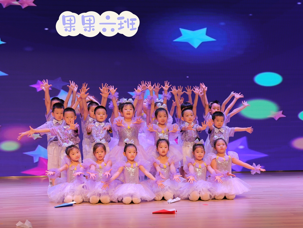 孩子是自由的精灵,让我们带着自由的使命遨游在云朵旁,连同我们的梦想和小小的纸飞机跟随果果六班的小朋友带来的舞蹈《孩子的天空》,飞向更广阔的世界。