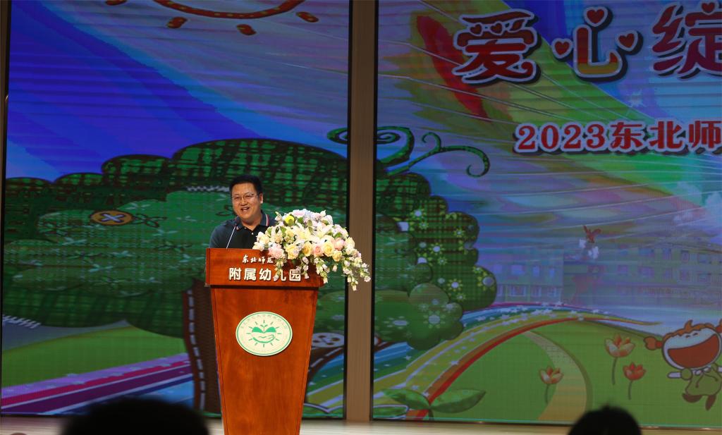 活动中,附属幼儿园园长缴润凯为小朋友送上节日贺辞。