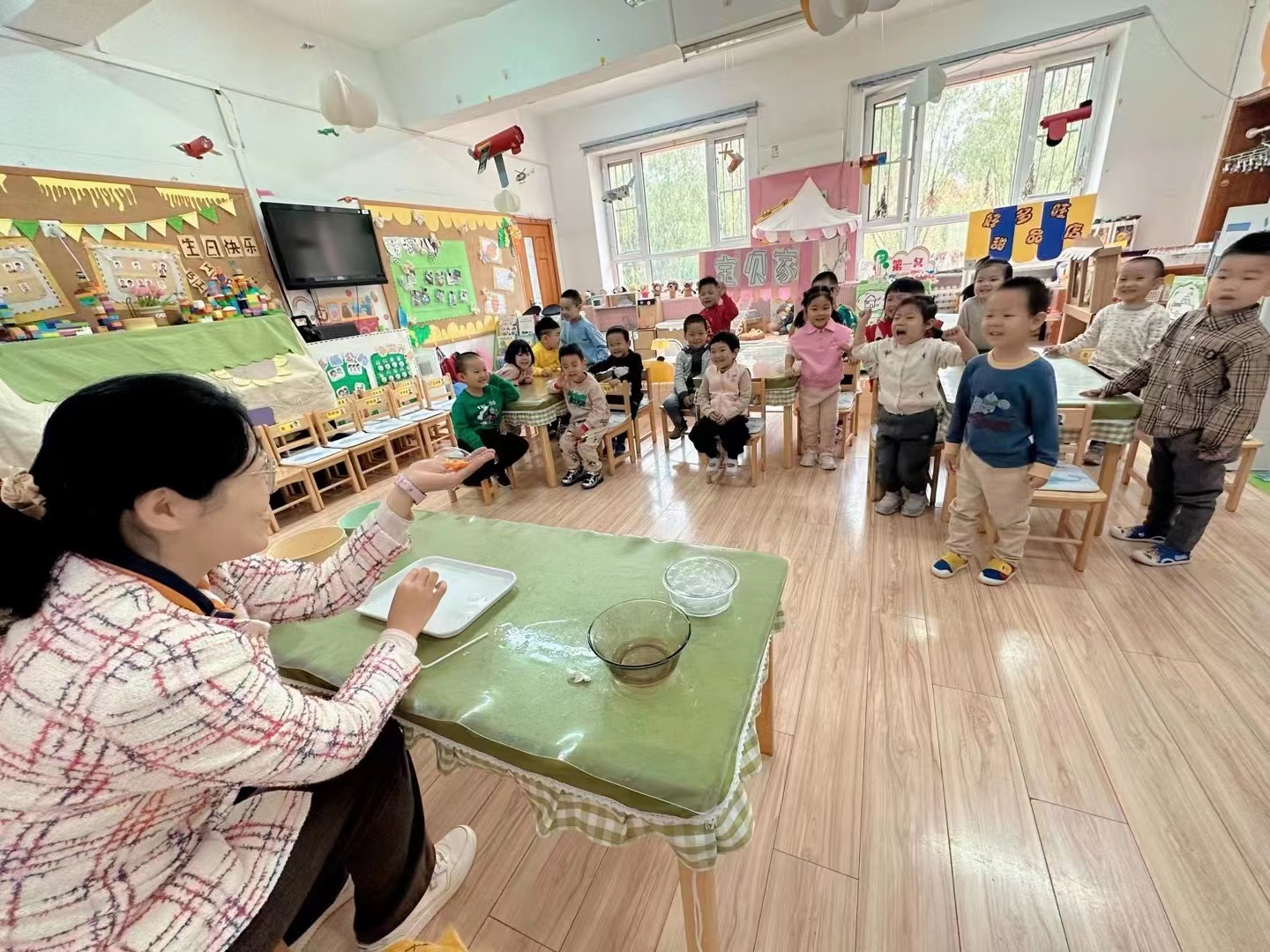 在科技创意活动开始之前,苗苗组各个班级提前预热,通过不同的方式,带领孩子们感受科学的奥秘。