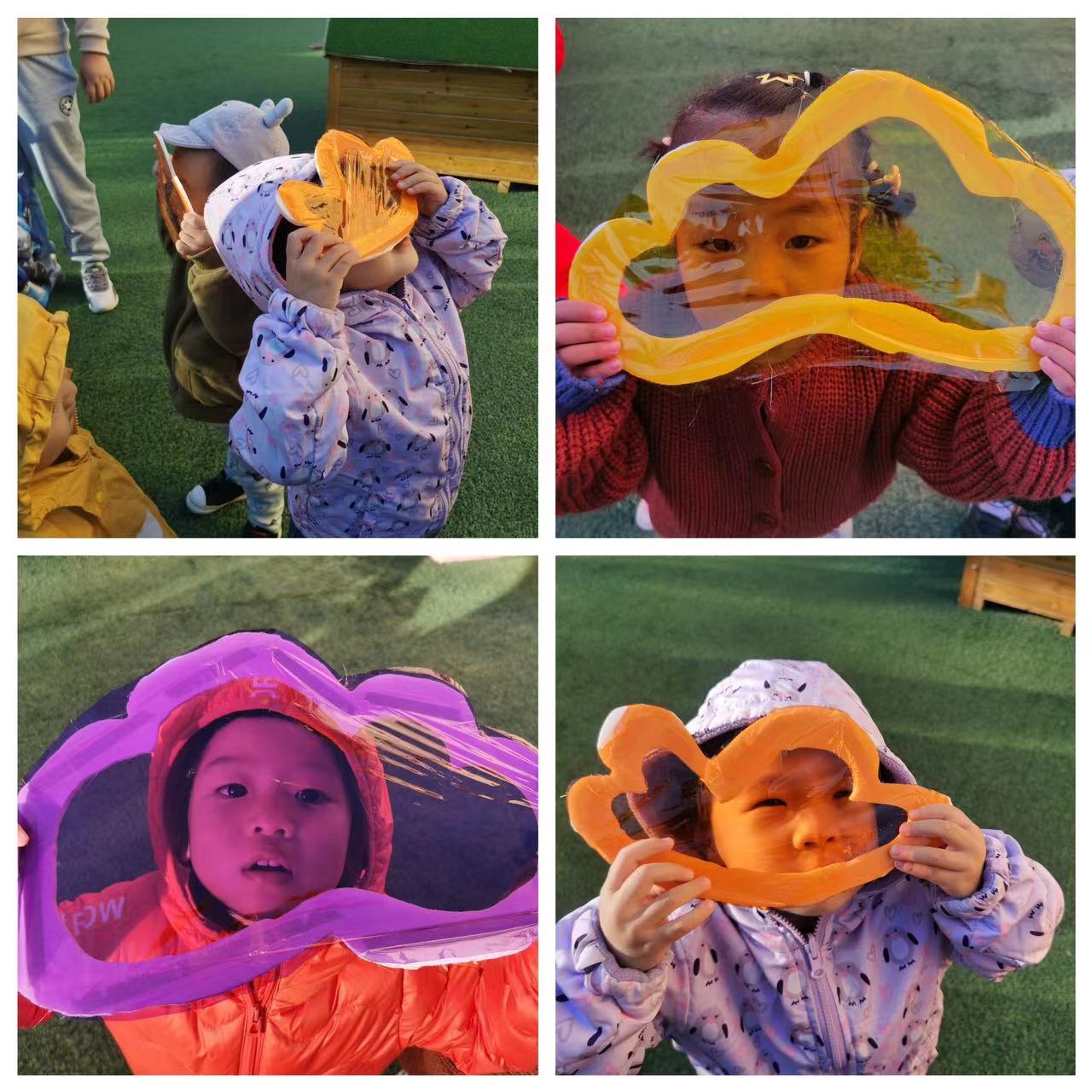 瞧!宝贝们全心全意地投入到观察大自然的颜色之中,享受各种颜色所带来的惊喜。孩子们用眼睛探索、欣赏大自然与周围环境中的缤纷美。
