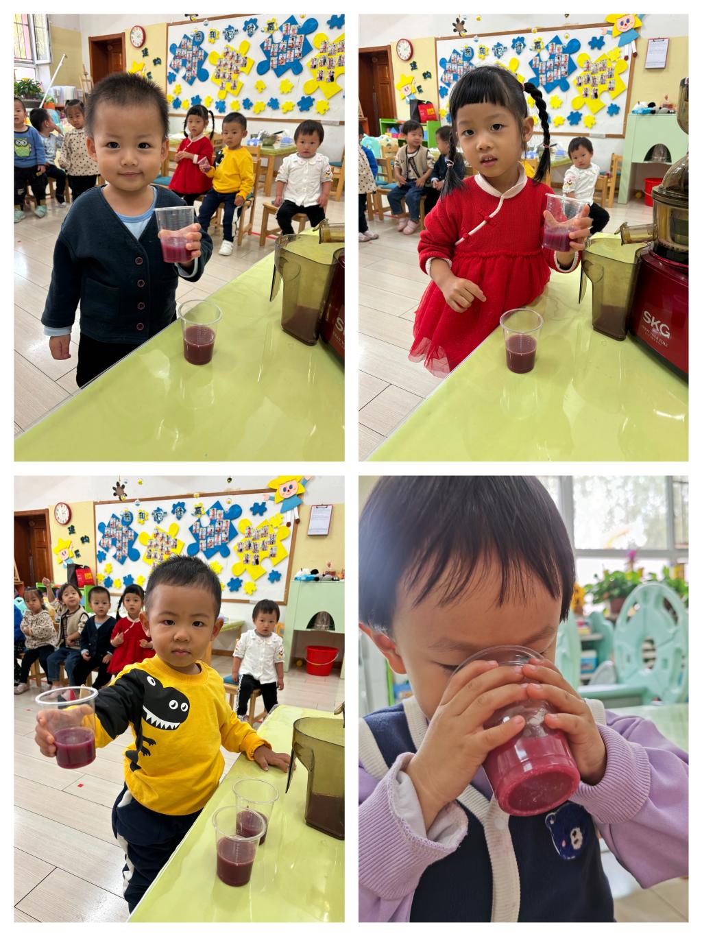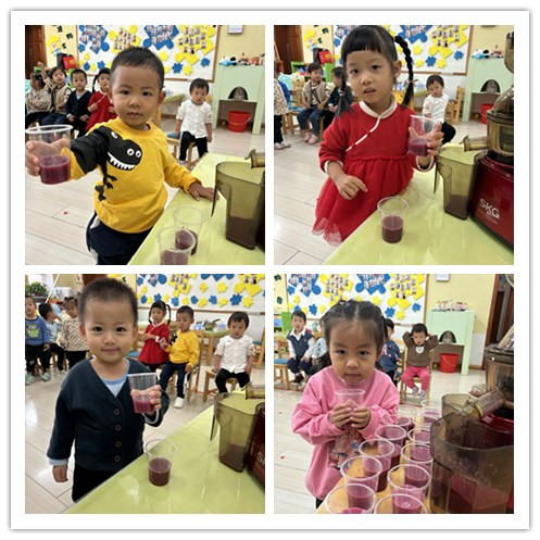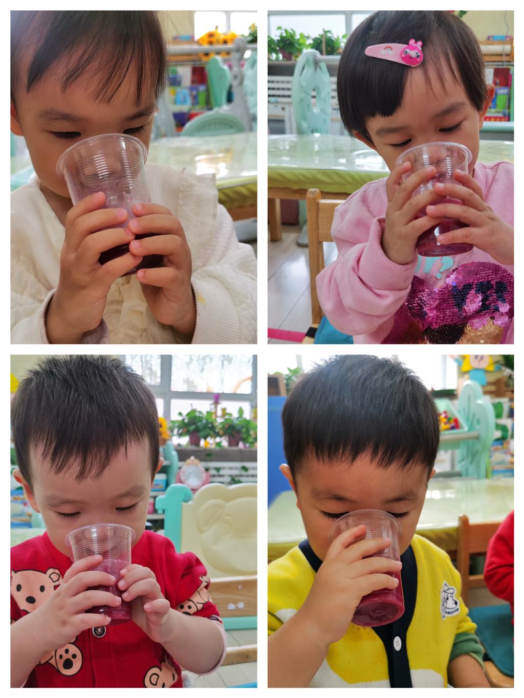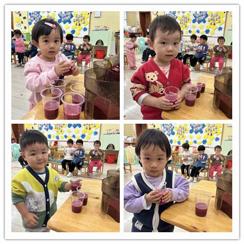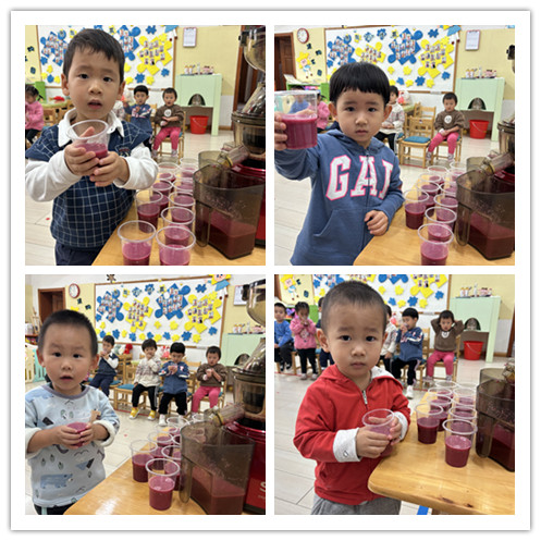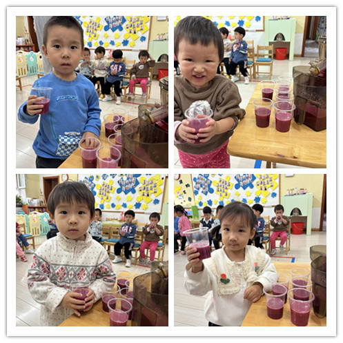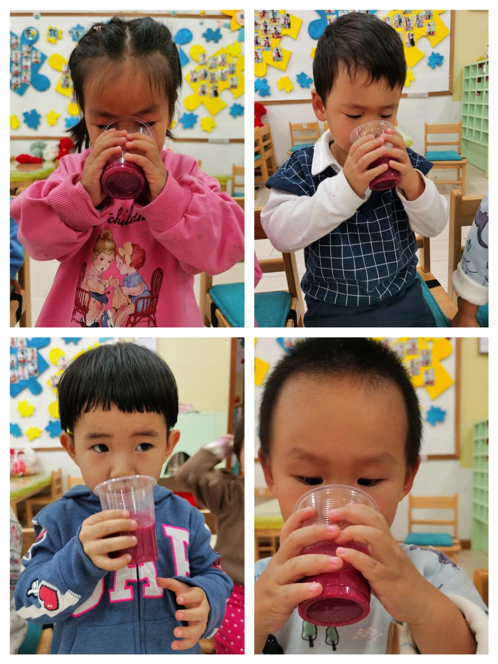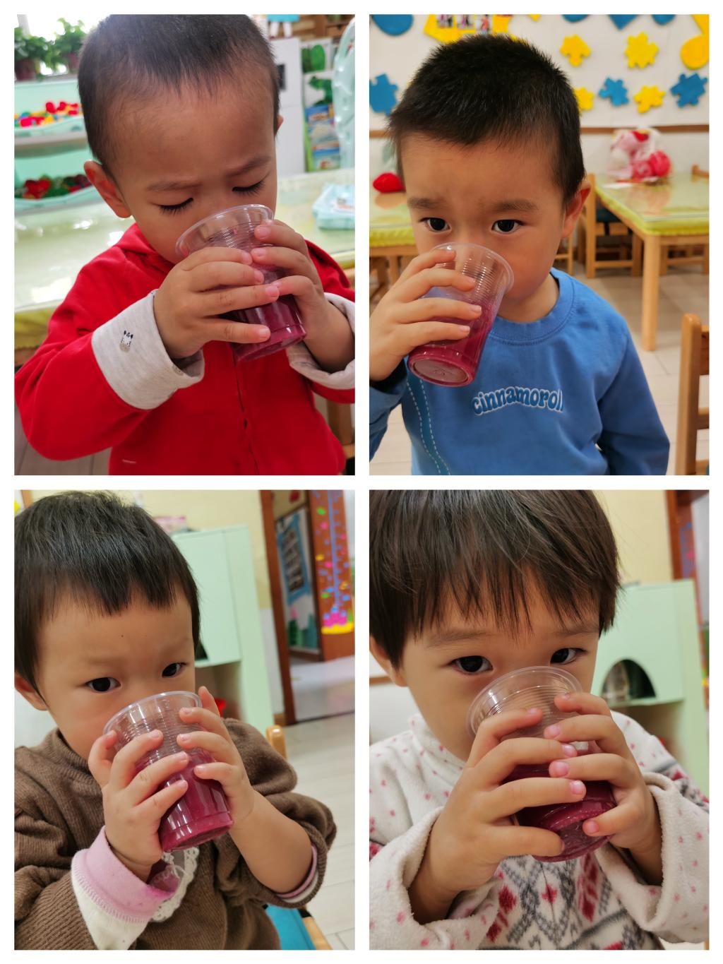 小朋友们选择了一杯石榴汁,开始他们的品尝时刻喽!
