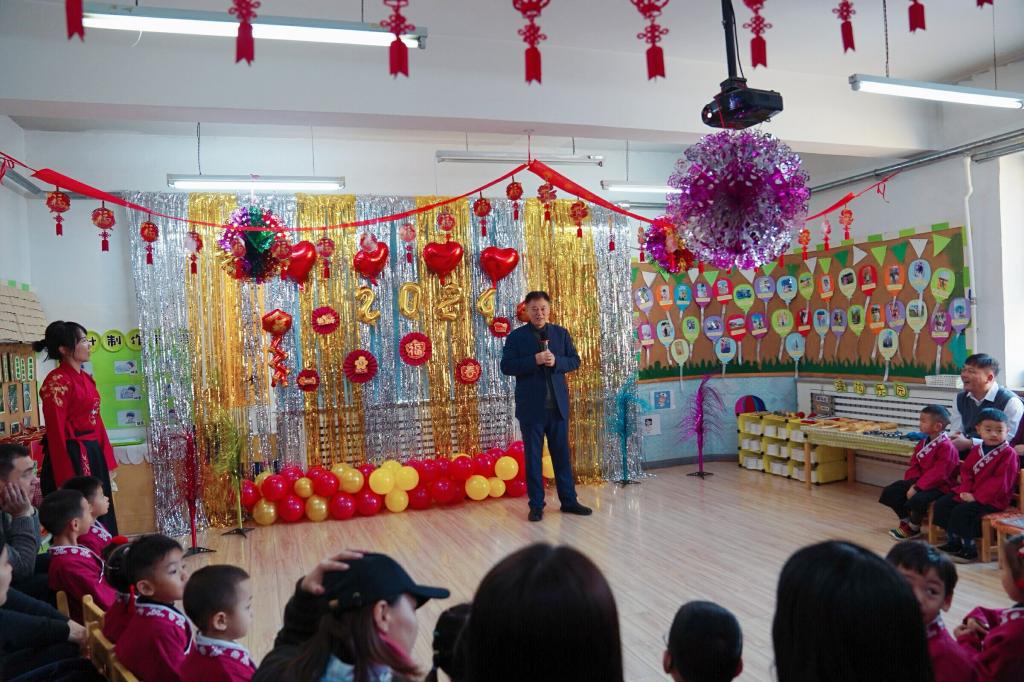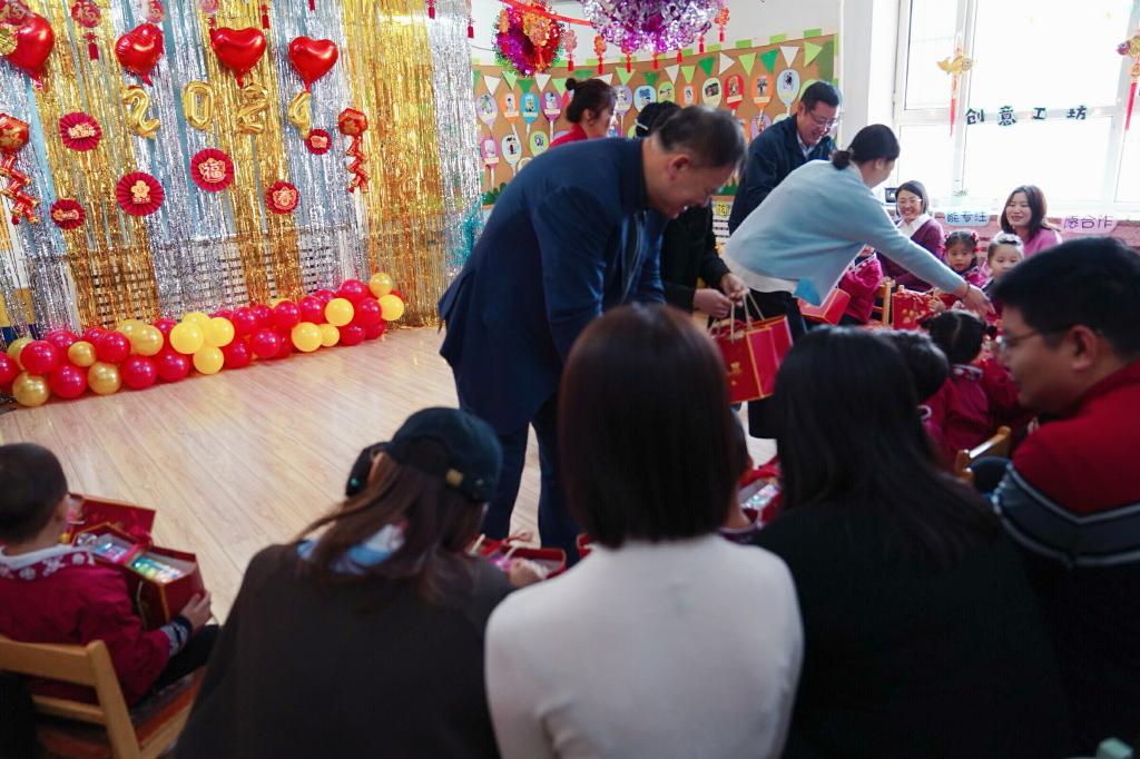 幼儿园园长也为宝贝们送来了新春祝福和礼物啦!看宝贝们的脸上都洋溢出开心的笑容。