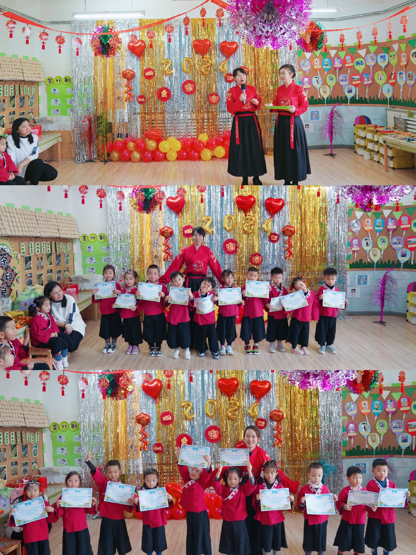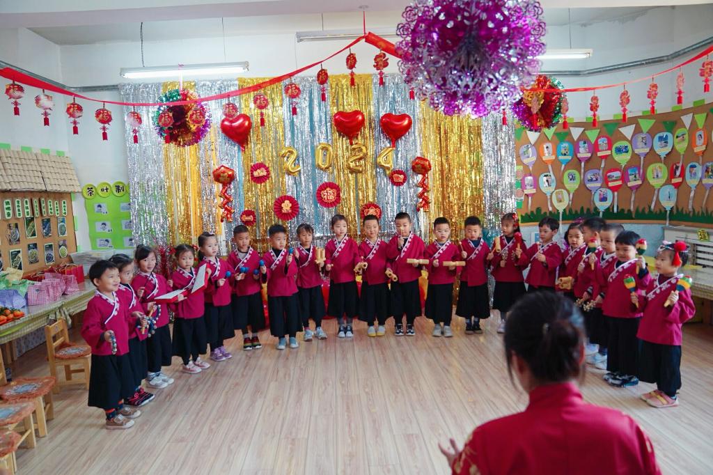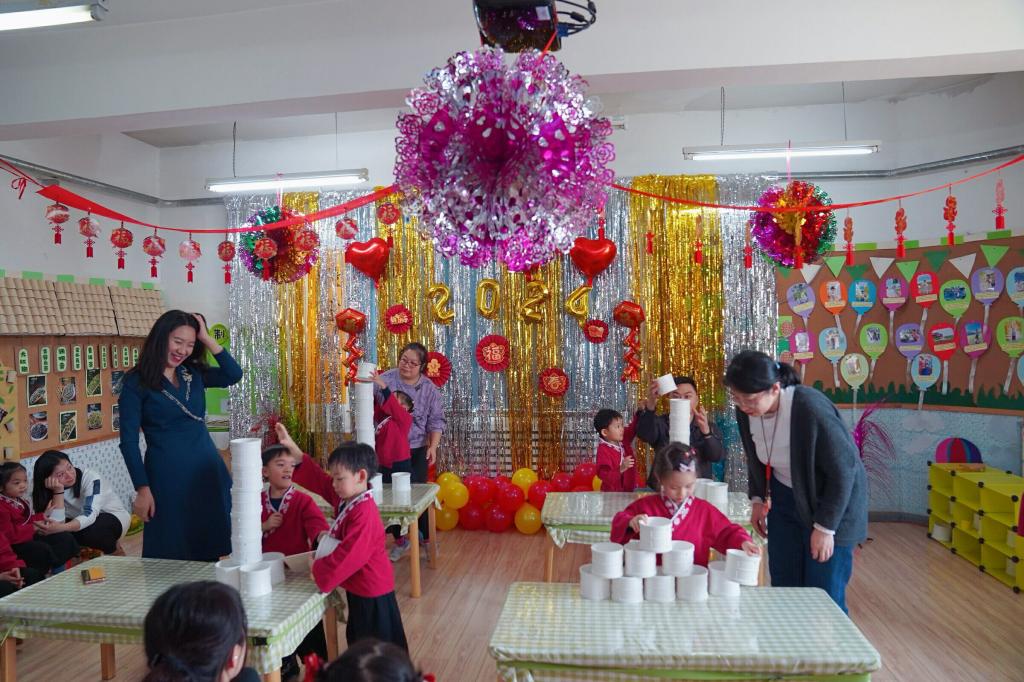 我们创氛围,迎新年,贴福字、挂拉花、做鞭炮。为了迎接新年的到来,老师和幼儿一起精心装扮了属于孩子们的天地。幼儿园的每个角落都洋溢着节日的喜庆气氛,新年味儿迎面而来。