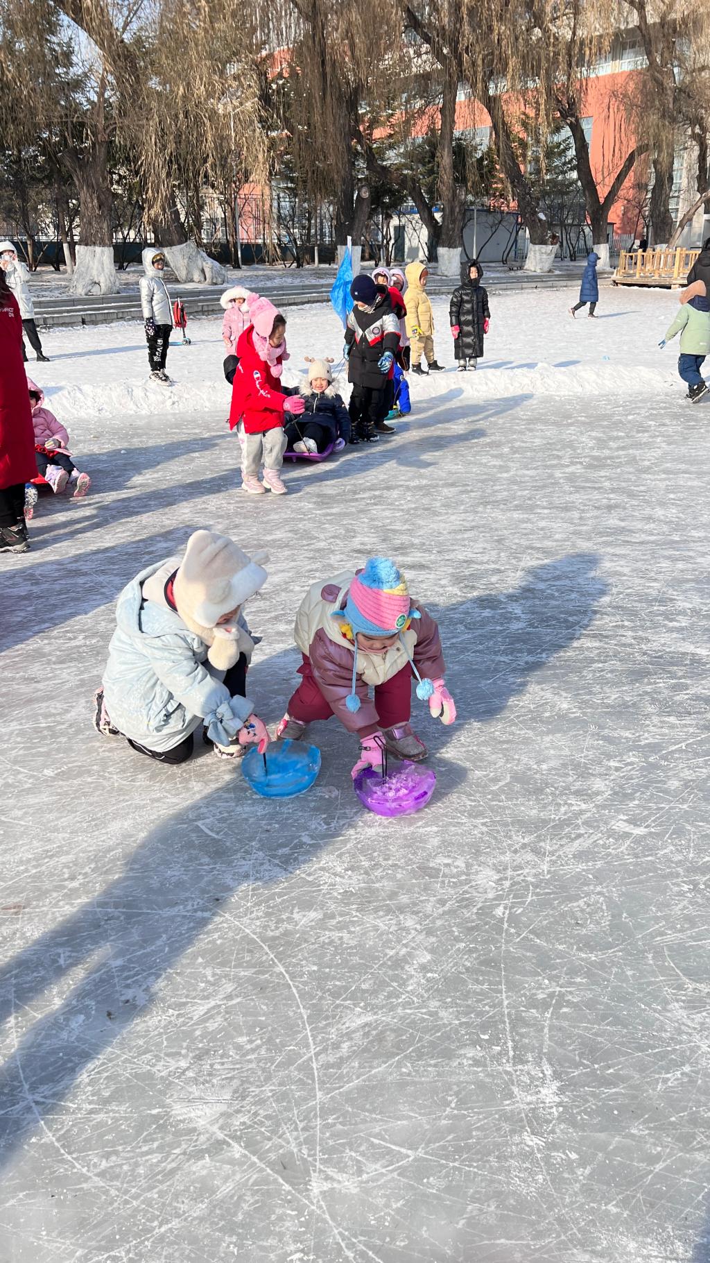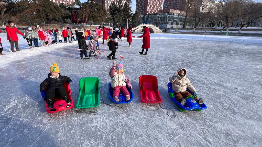 2024年1月4日上午,我园联合东北师范大学体育学院共同在师大静湖开展冬季冰上活动。滑冰场上不仅有专业的滑冰哥哥、姐姐,也首次迎来了一批小客人。