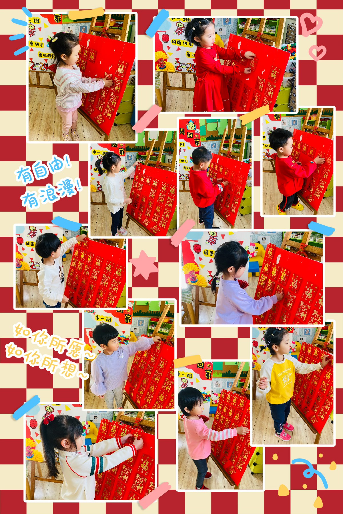 小朋友们又来到“红包墙”前摘下幸运的“红包”,红包里面是甜甜的棒棒糖,希望小朋友们新的一年甜蜜幸福,棒棒哒!