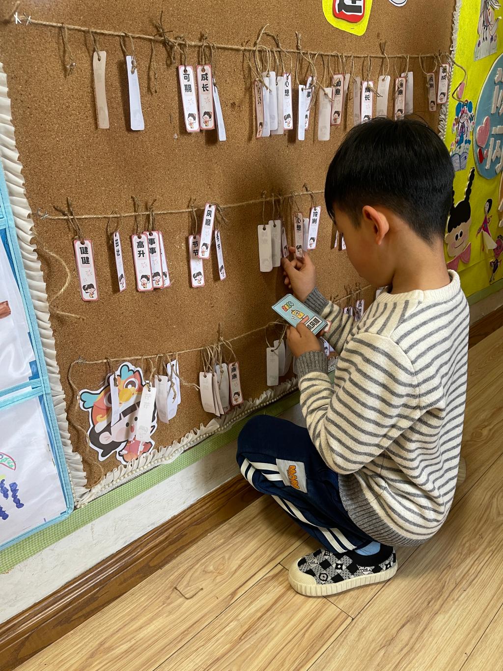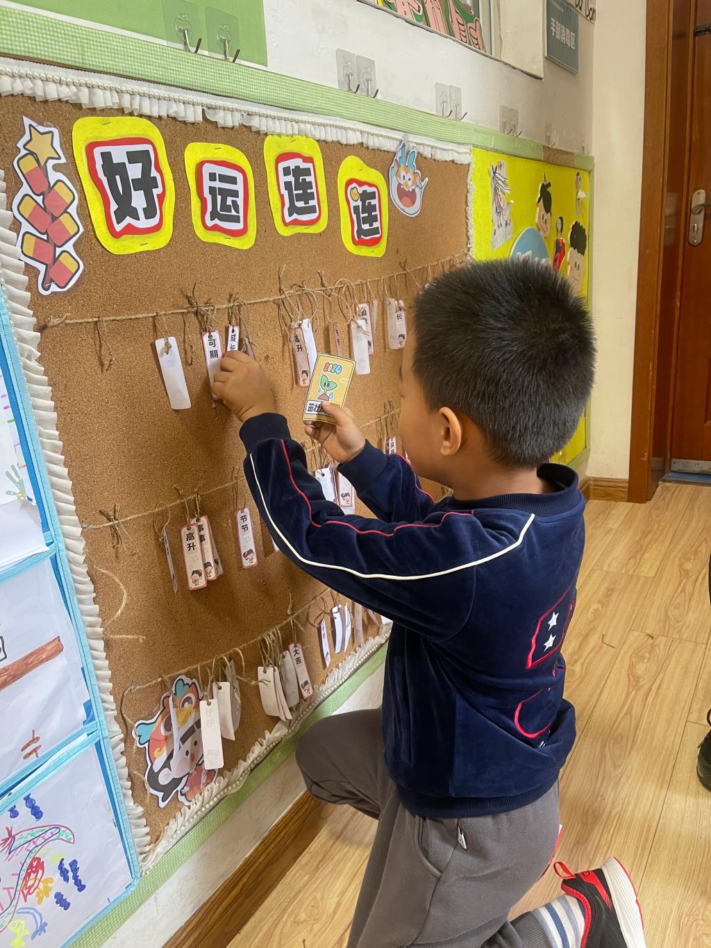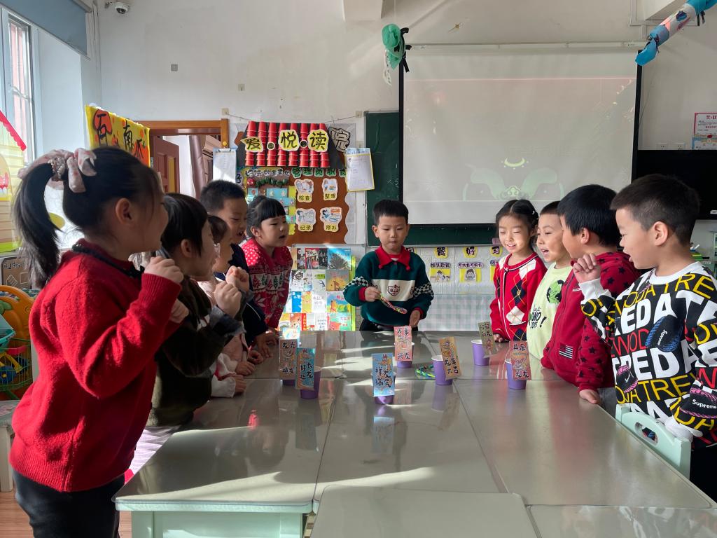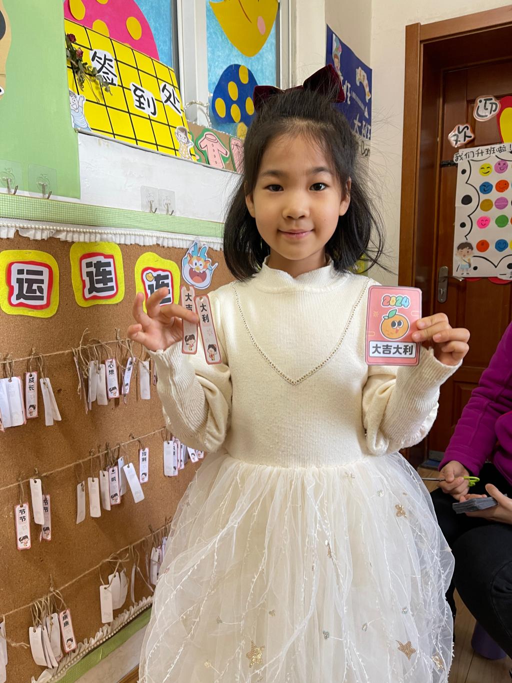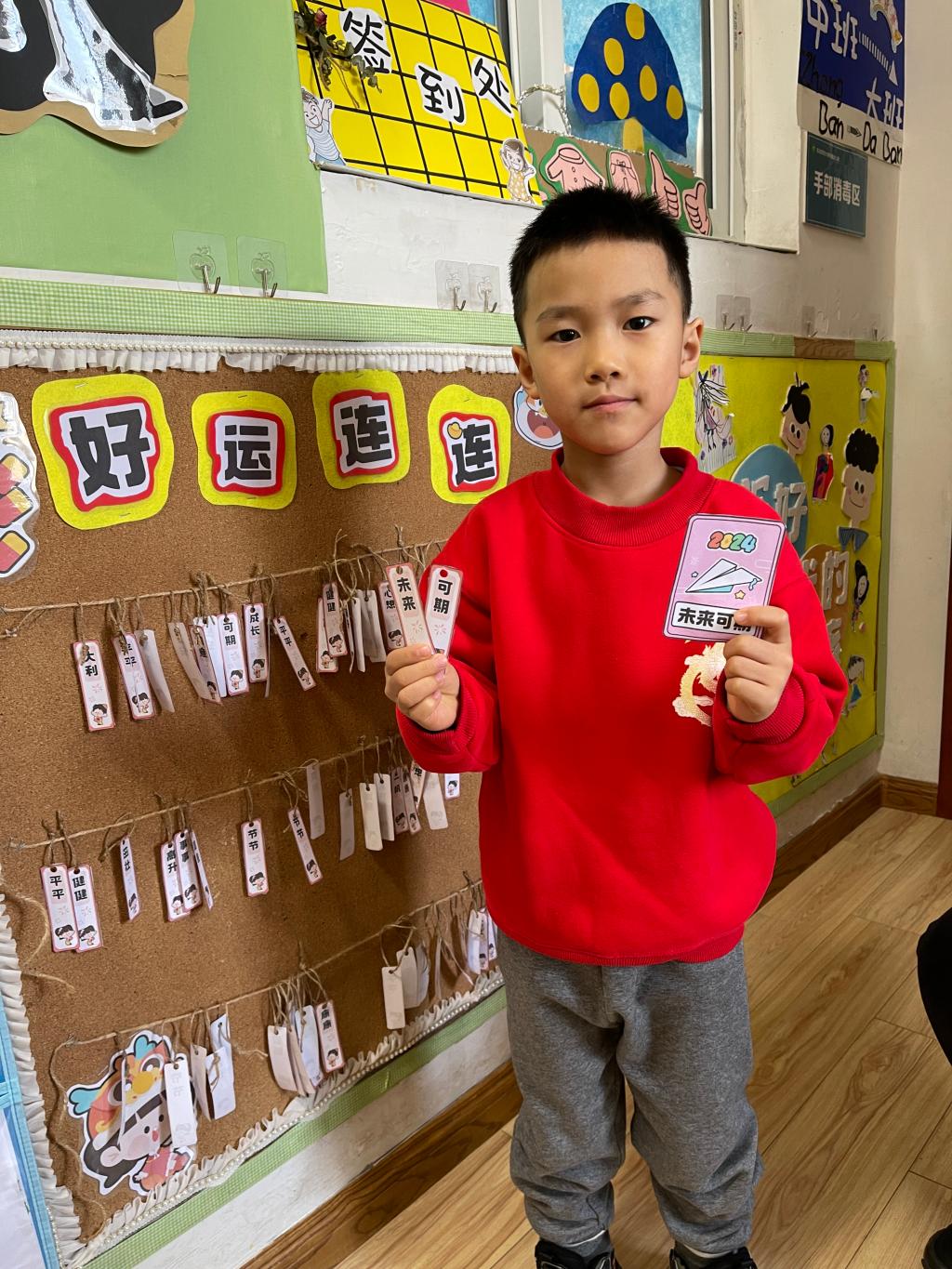 龙年大吉、祥龙瑞气、龙行大运、“龙”重登场、好运长“龙”、其乐“龙龙”、“龙”华富贵、“龙”光焕发、万事兴“龙”、欣欣向“龙”,这些谐音吉祥话可是让果果一班的小朋友们说得太溜了,跟我们的套圈游戏结合起来,一起套一句祝福话吧!