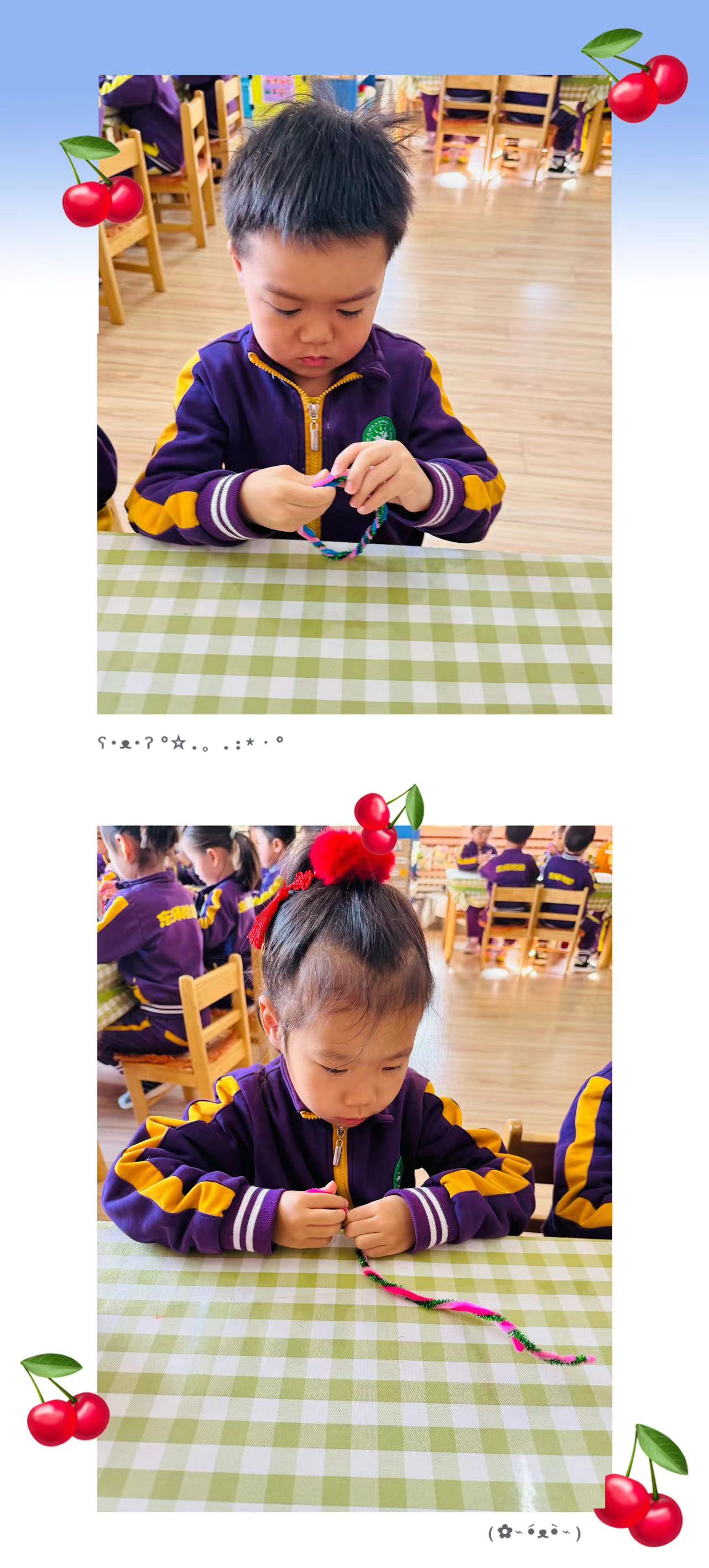 最令人期待的环节——手工制作开始了。老师为小朋友们准备了各种各样的材料,有扭扭棒、彩泥等,小朋友亲自动手制作精美的手环。