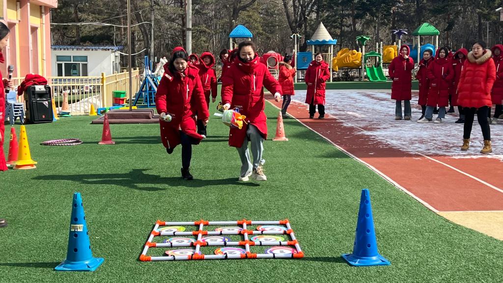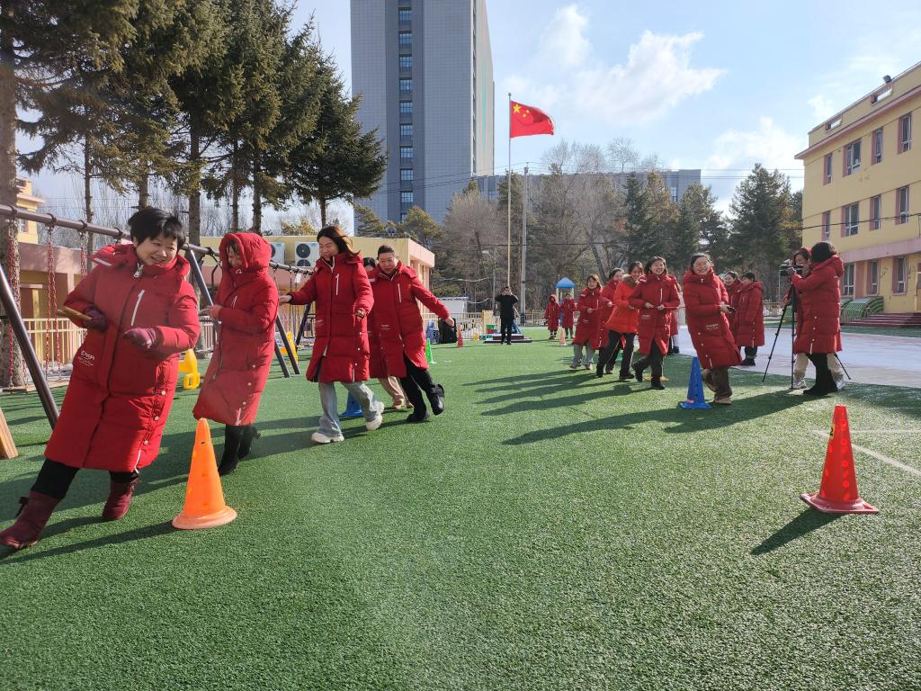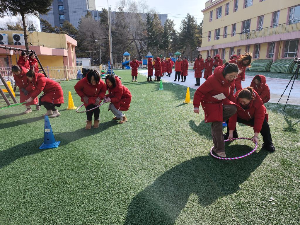 趣味游艺活动精彩不断,全园女教职工以团队的形式积极参与到每个游戏活动中。