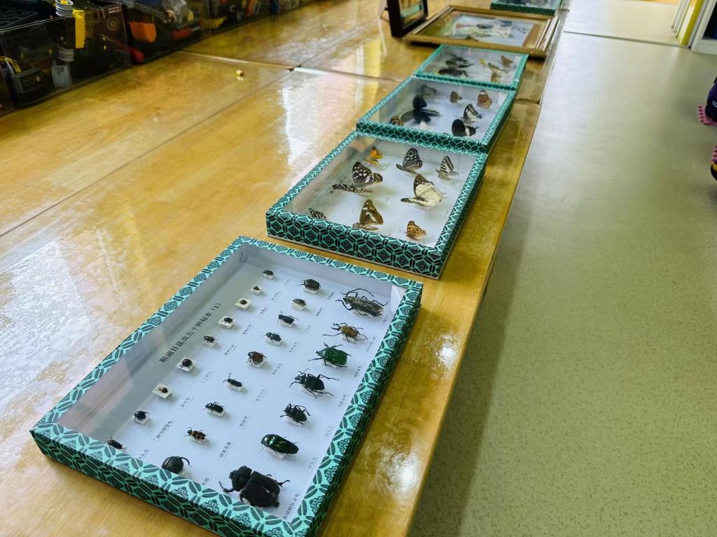 从实验室带来的昆虫标本,让孩子们可以近距离观察身边常见昆虫的特点。