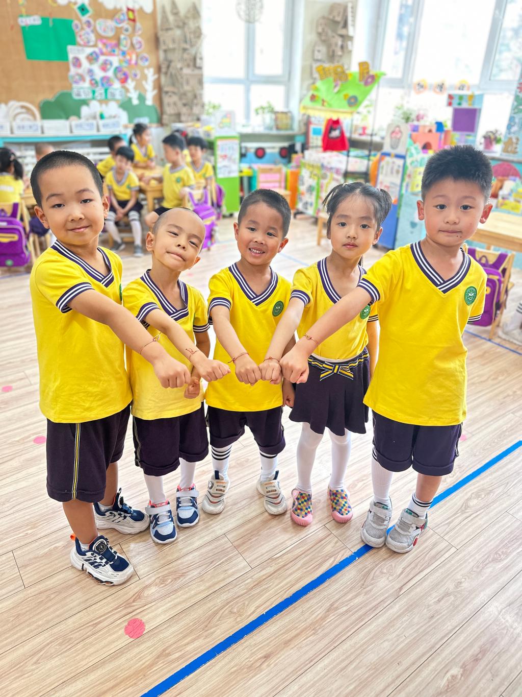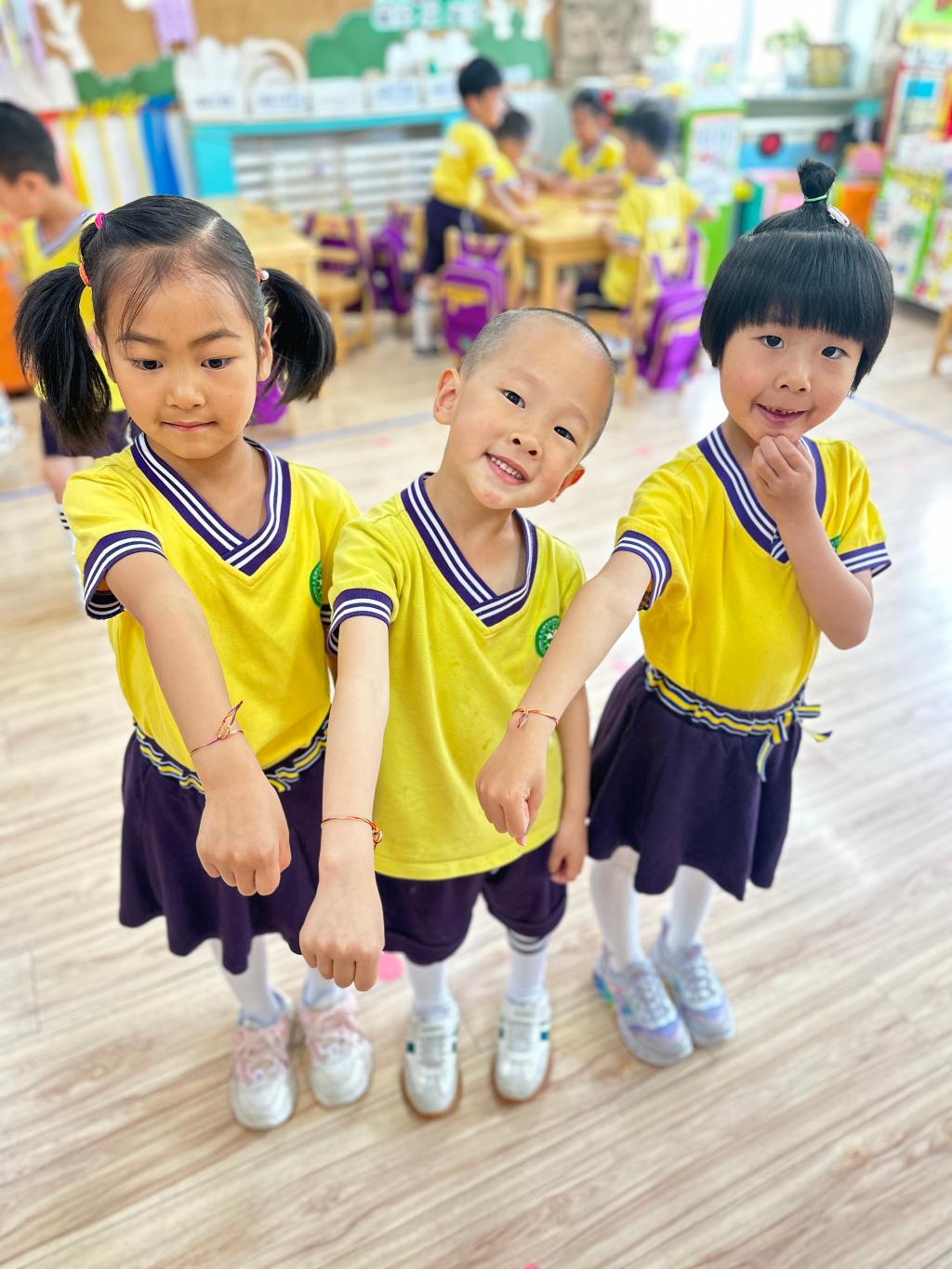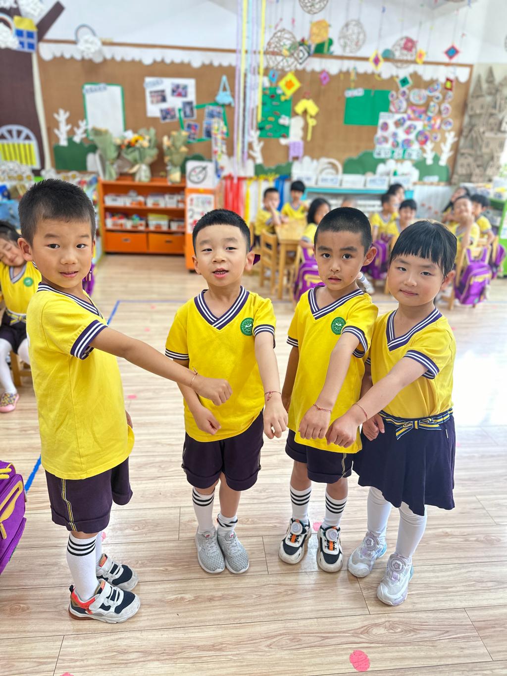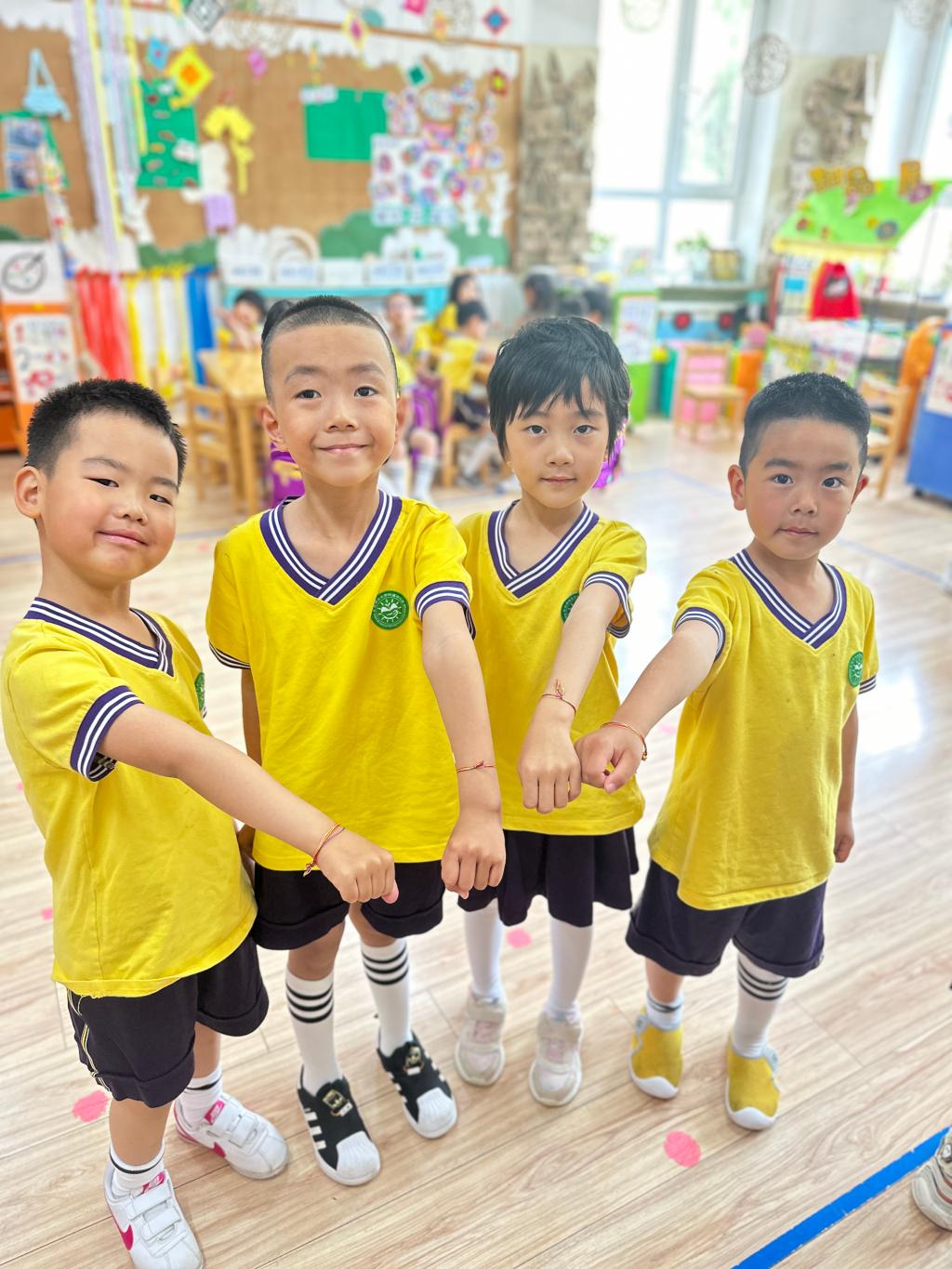 赛龙舟是端午节重要的习俗之一。老师和孩子一起在操场上“赛龙舟”。孩子们兴致勃勃地玩起了岸上龙舟竞渡,在响亮的鼓声中,孩子们紧随鼓点,用力划起来,颇有龙舟手的气势,站在一旁的“啦啦队”为各自班级呐喊助威,好热闹啊!