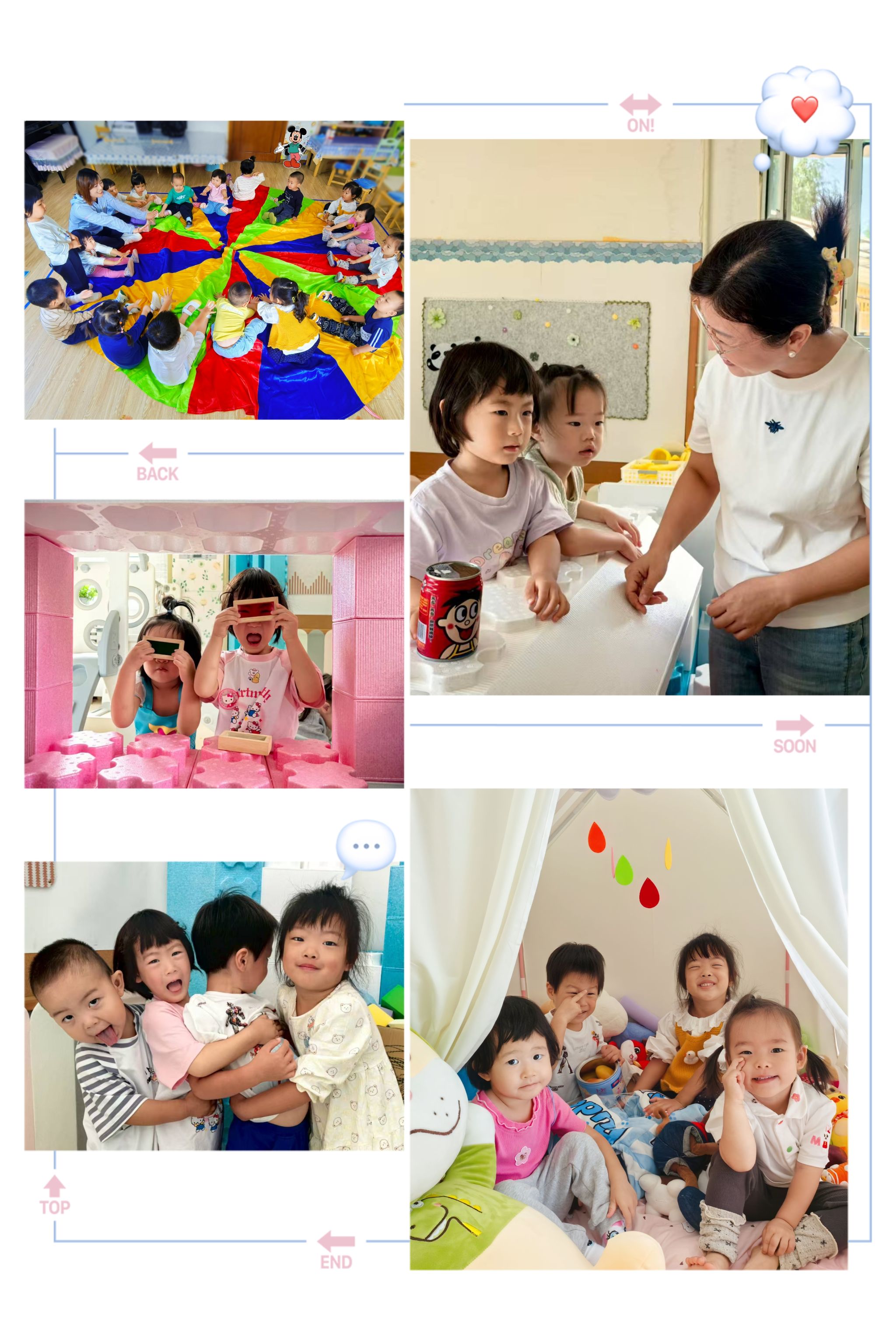 ②社交萌芽初显现:有的宝贝会主动和身边小伙伴分享玩具,看到同伴哭了会递上小纸巾,集体游戏时也愿意跟着老师的节奏互动,慢慢从“自己玩”走向“一起玩”。