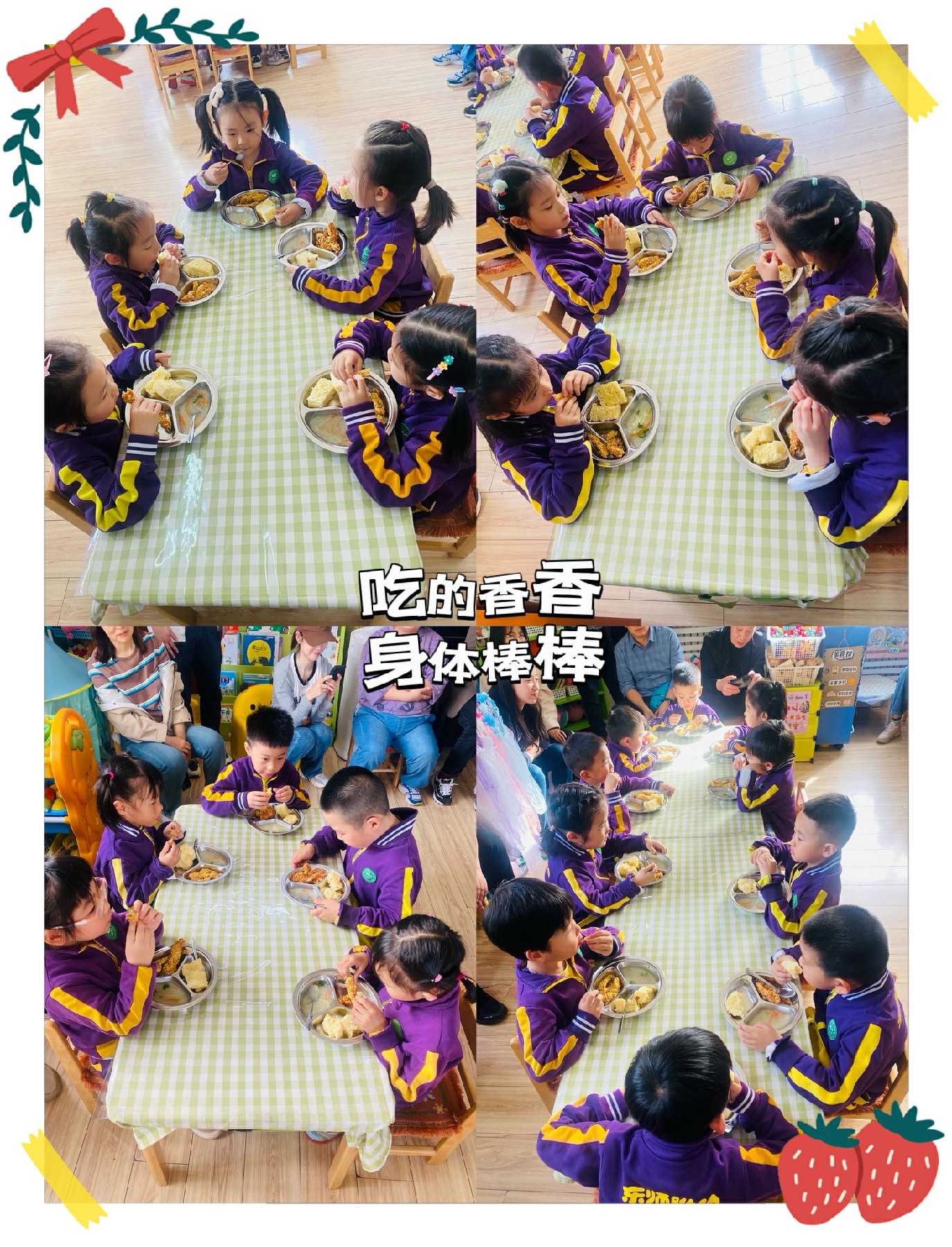 晚餐时间了!幼儿园的饭菜既营养又美味,小朋友们特别喜欢幼儿园的美食。吃的香香,身体棒棒!