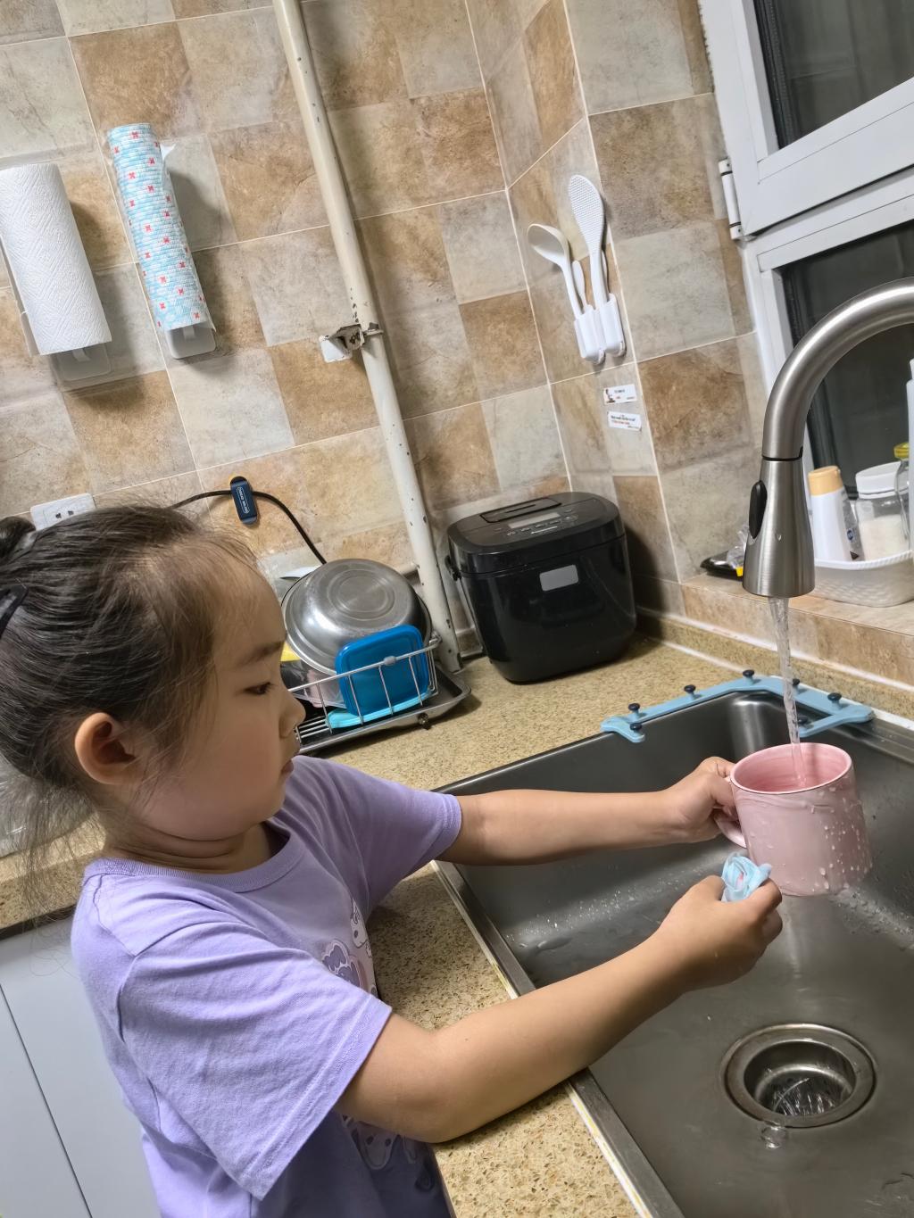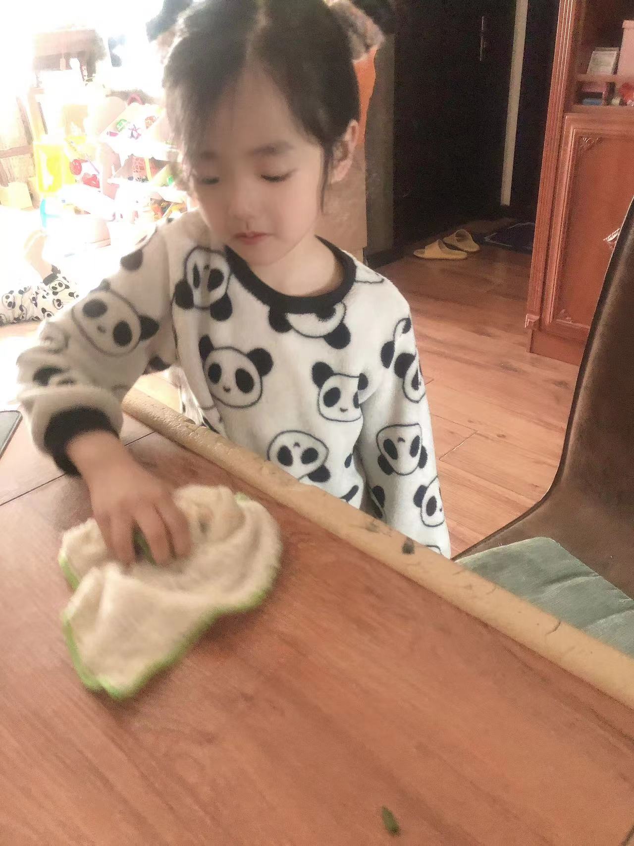 孩子是家庭的一份子,爸爸、妈妈也让孩子参与到家庭劳动中。