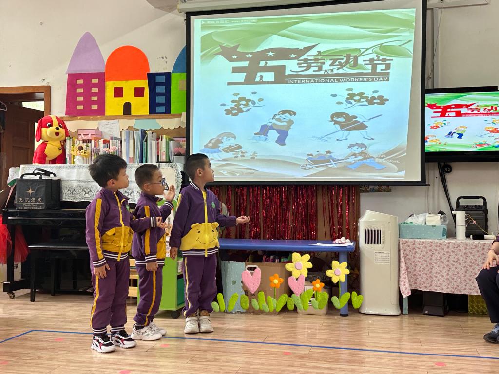 在“五一”劳动节到来之际,班级通过劳动主题的故事、手工制作、儿歌等内容帮助幼儿了解五一劳动节的由来,明白身边的人都是劳动者,养成爱劳动的好习惯,懂得劳动最光荣的道理。