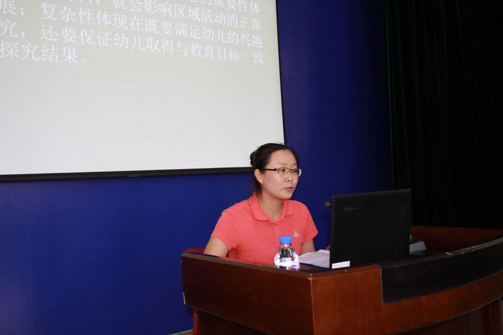 接着王萍园长为培训班的教师们作《幼儿园区域活动的设计与指导》的精彩讲座。 讲座从区域活动概述、什么是区域活动、区域活动的形式、区域活动的范围、区域活动的价值、区域活动的特征、区域活动中教师的角色以及怎样进行区域活动的设计、怎样进行区域活动的指导等方面进行了阐述,教师们听后都很受启发。