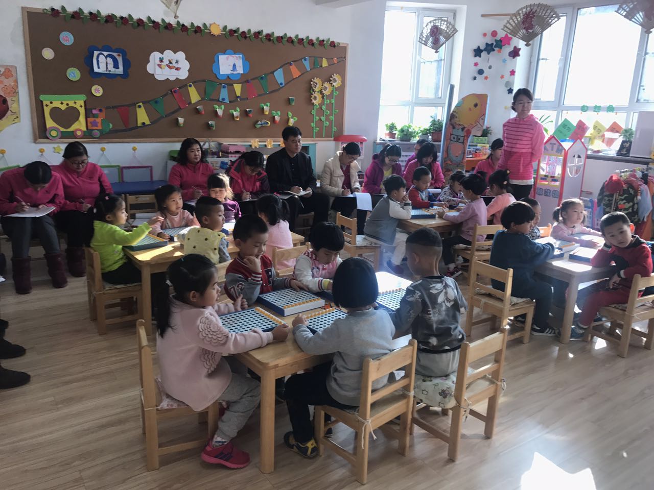 缴润凯园长也非常关注青年教师的专业成长,深入班级观摩教学活动。活动中,青年教师结合自己在教研培训中的学习心得,精心设计教学活动,在活动中运用多种游戏化的教学手段,把数学认知的目标、内容、要求融入各种多功能数学插板的游戏中,开展了丰富多彩的教学活动,幼儿在游戏中动手、动脑,感知、体验和操作,发现数学的有用和有趣,激发了幼儿的学习兴趣。