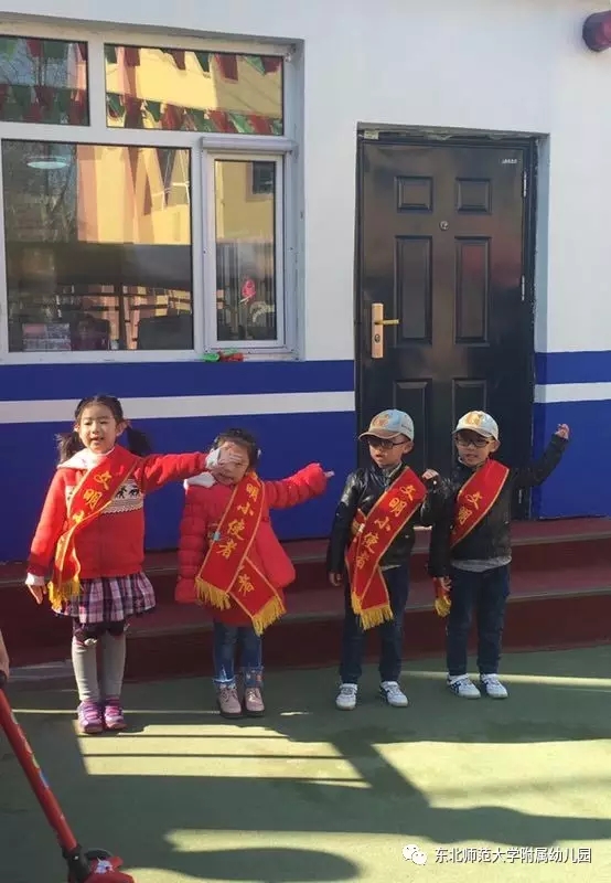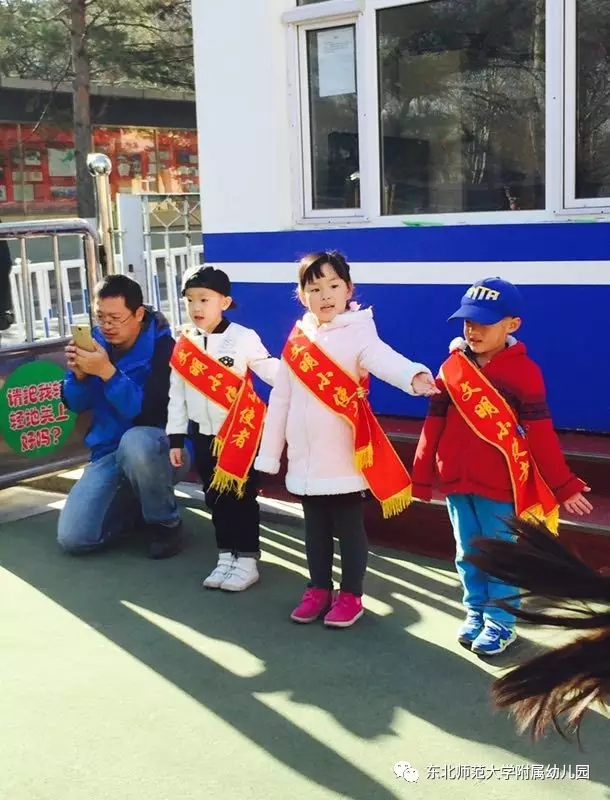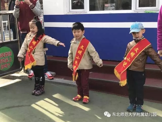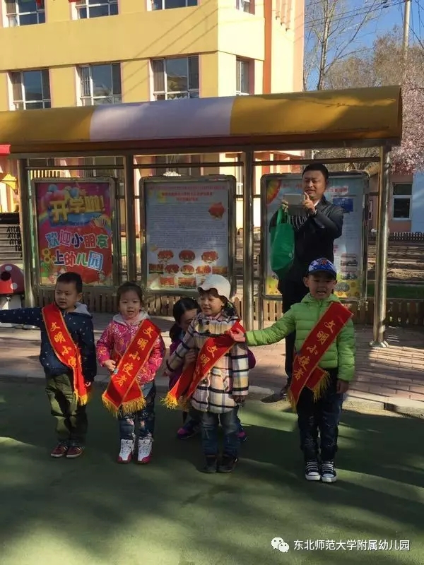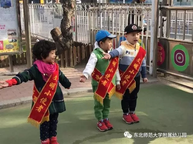 看,文明小使者们正站到幼儿园门口迎接家长和小朋友们呢。刚开始的时候小使者们有些不好意思,但是老师说,这是一件光荣的事情,要清楚的说清每一句话。
