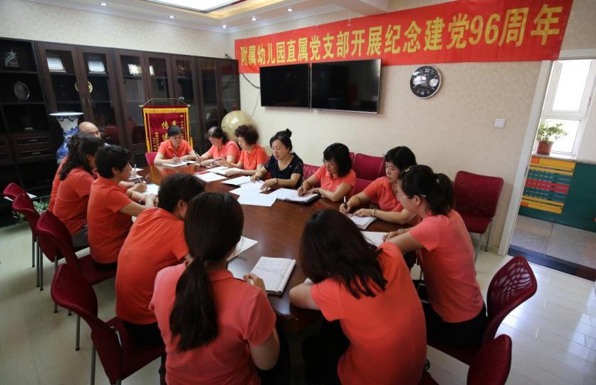为庆祝中国共产党成立96周年,继承和发扬党的优良传统,推进“两学一做”学习教育常态化制度化,进一步激发基层党组织和党员的活力,根据学校工作部署,附属幼儿园直属党支部认真落实文件精神,开展了系列活动——庆祝中国共产党成立96周年,引导和激励全园党员干部和群众凝心聚力共促幼儿园和谐发展,现将有关开展活动汇报如下: