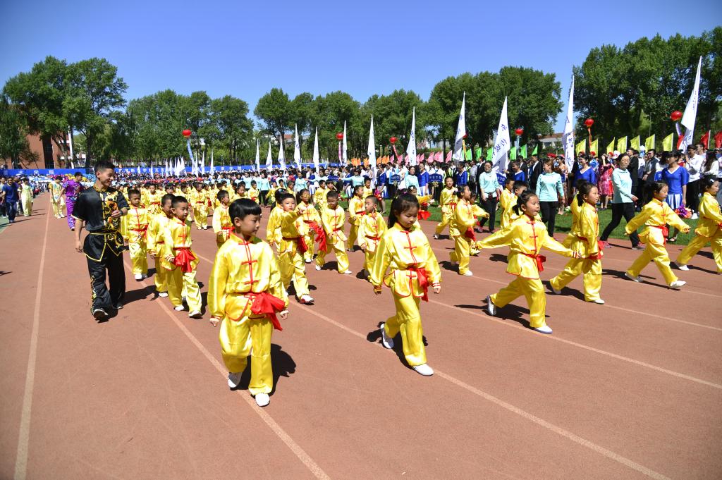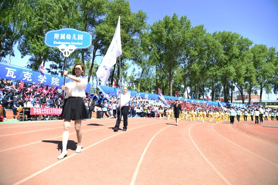 5月27日,幼儿园工会组织我园教师和142名幼儿代表参加了东北师范大学第五十三届田径运动会开幕式检阅。