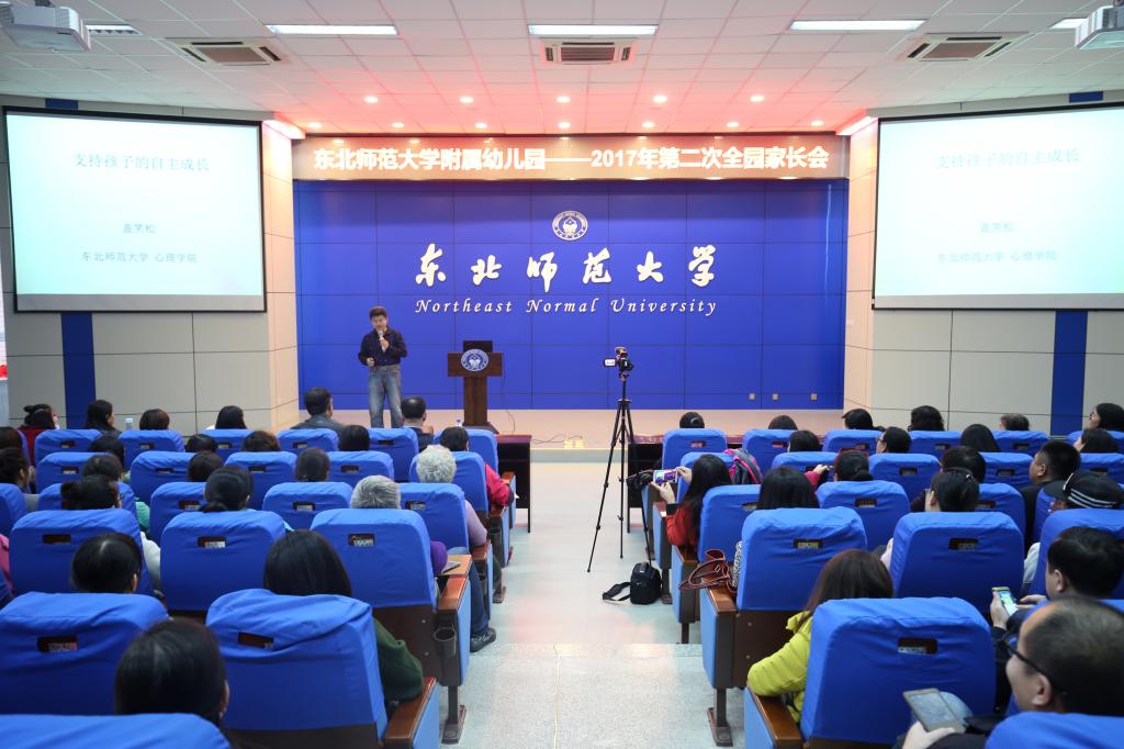 此次家长大会也是我园召开的第六场专家报告会。我们邀请东北师范大学心理学院院长、发展与教育心理学方向博士研究生导师、副主任委员、中国心理卫生协会理事、吉林省心理学会秘书长盖笑松教授为家长做主题为《支持孩子自主成长》的专题讲座。盖笑松教授的讲座理论结合实践,利用大量的实例阐述了怎样建构理想的亲子关系。平和中透着深刻,深刻中揭示着人性,让在场的每位家长都感受到、理解到人世间那种最亲密又最遥远的亲子关系!
