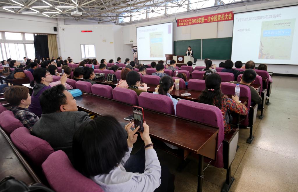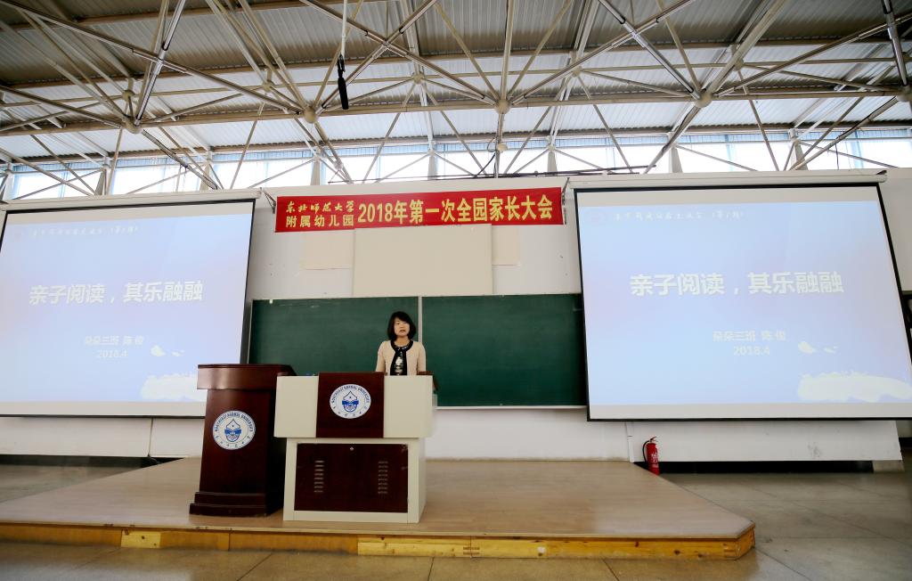 2018第一次全园家长大会暨《幼儿早期阅读专题报告与亲子阅读经验分享》主题报告会于2018年4月25日下午在逸夫教学楼5楼13教隆重召开,大会由园长助理罗晓娜老师主持。
