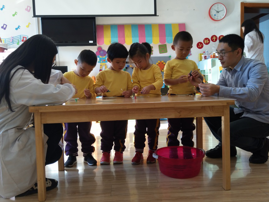 为了更好的开展科学探索活动,我们还邀请家长走进班级,走进幼儿,开展家长助教活动。既增进了家长、幼儿以及教师之间的合作与情感,也让幼儿近距离感受科学的魅力。