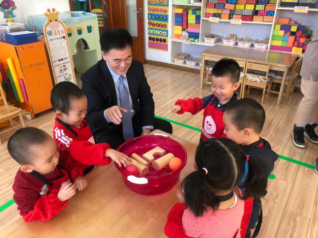 物理学院的同学们也来到幼儿园组织幼儿开展“科学小制作”活动。孩子们大胆尝试,自己动手完成科学玩具的制作。缴园长也在百忙之中参与活动并发表讲话,感谢师大学子为幼儿园的科学领域活动增添色彩。