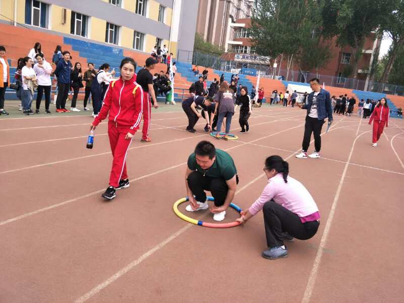 运动会上,教职工分为3队,共同参加了车轮滚滚、愚公过河、穿越时空等集体比赛活动。大家团结一致、齐心协力、互相加油打气,欢声笑语不绝于耳。