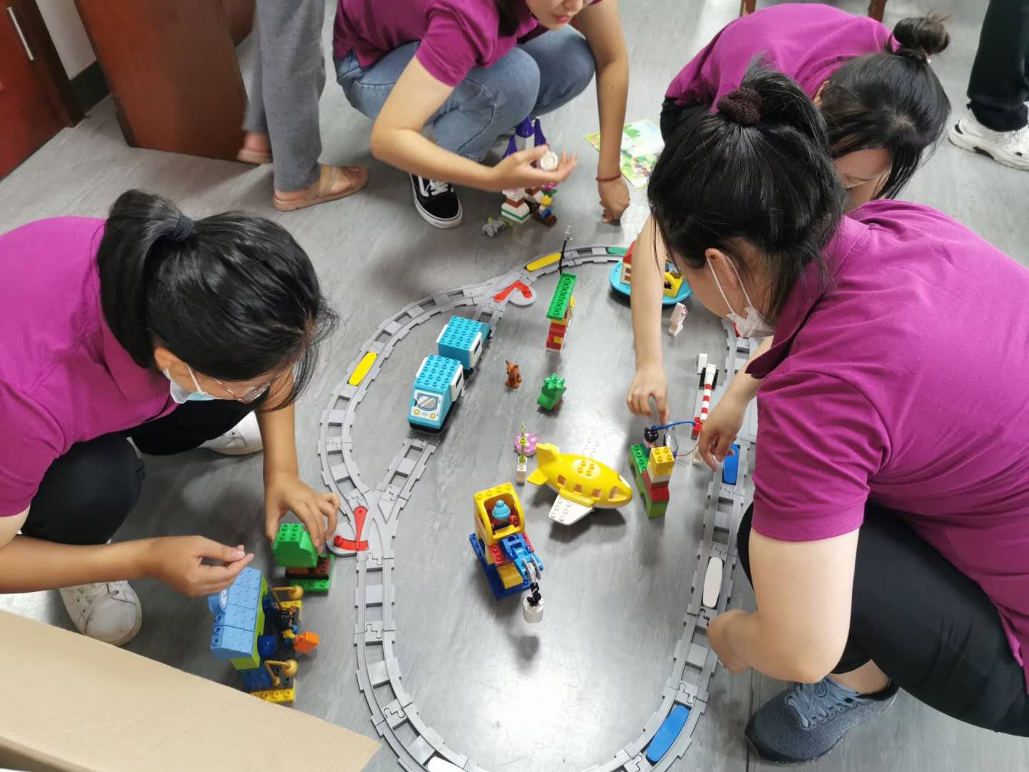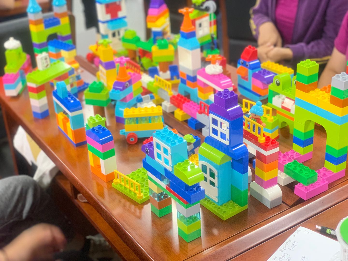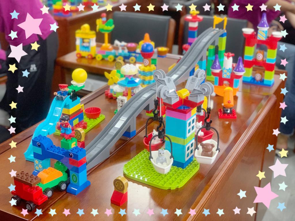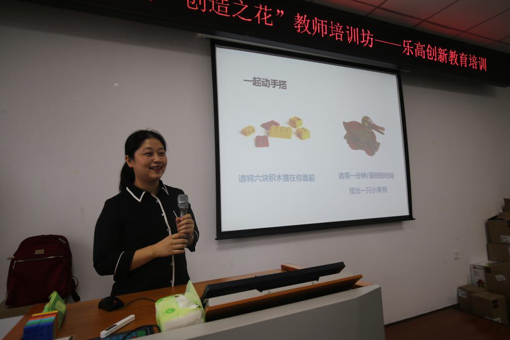 “创造的教育”是我校附属幼儿园的教育特色,如何让这个特色更加鲜明,一直是整个团队努力实践和钻研的方向。乐高玩教具是开发儿童创造力的一个有力载体。此次培训,教育部幼儿园园长培训中心王赫男老师就乐高玩教具的教育理念以及应用操作,给教师们进行了详细地讲解。全园教师亲身体验乐高套装,利用乐高的搭建方法、发挥各自的创意,将一块块看似简单的乐高积木变化出无限的造型,搭建出了有情节性的创意乐高世界,体验到了建构游戏的乐趣,提升了基于乐高开展教学设计的能力,为幼儿园“创造的教育”落地实践提供了有力的支撑。